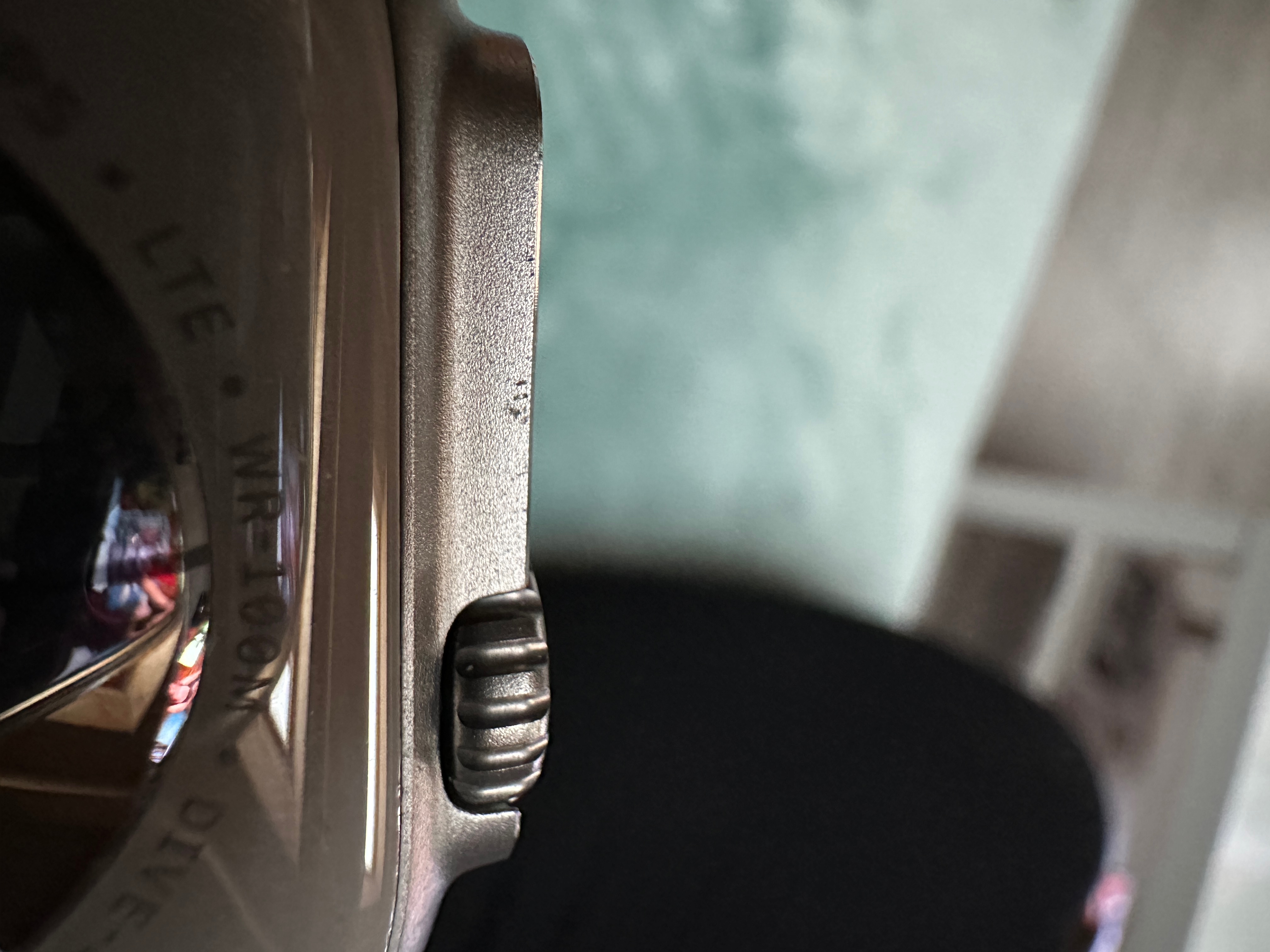 auf dem Bild sieht das eher aus wie Rillen im Gehäuse. Diese können schnell auftreten, bereits bei leichten Stößen. Titan ist ein recht weiches Material. Ganz so unverwüstlich, wie uns die Werbung weiß machen wollte, ist die Ultra leider nicht.