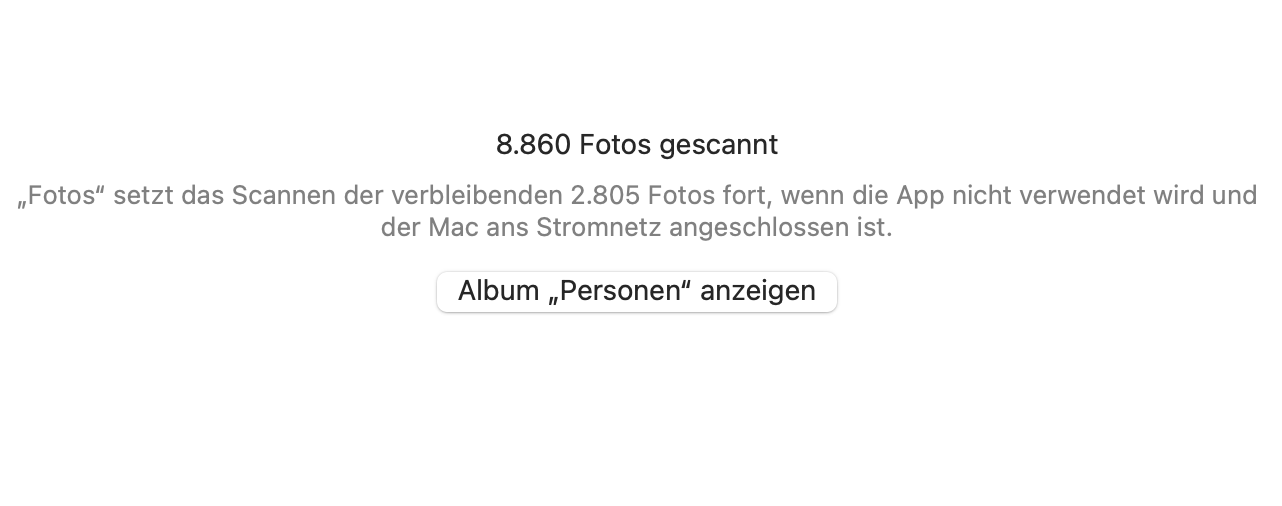 - Die Gesichtererkennung: Hierfür ist es wichtig, dass du nicht mit Fotos arbeitest. Starte Fotos, um die Hintergrundprozesse zu starten, nachdem der Mac neugestartet worden ist, dann arbeite in einem anderen Programm weiter. das Fotos Fenster darf nicht das Fenster im Vordergrund sein.