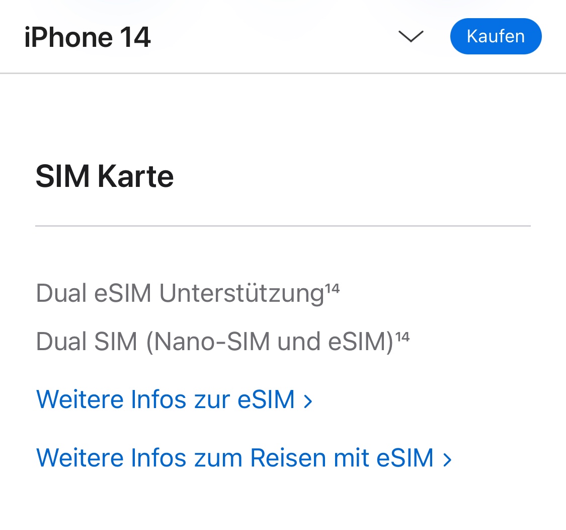 Beim iPhone 14 zwei nano SIM-Karte einlegen nicht möglich