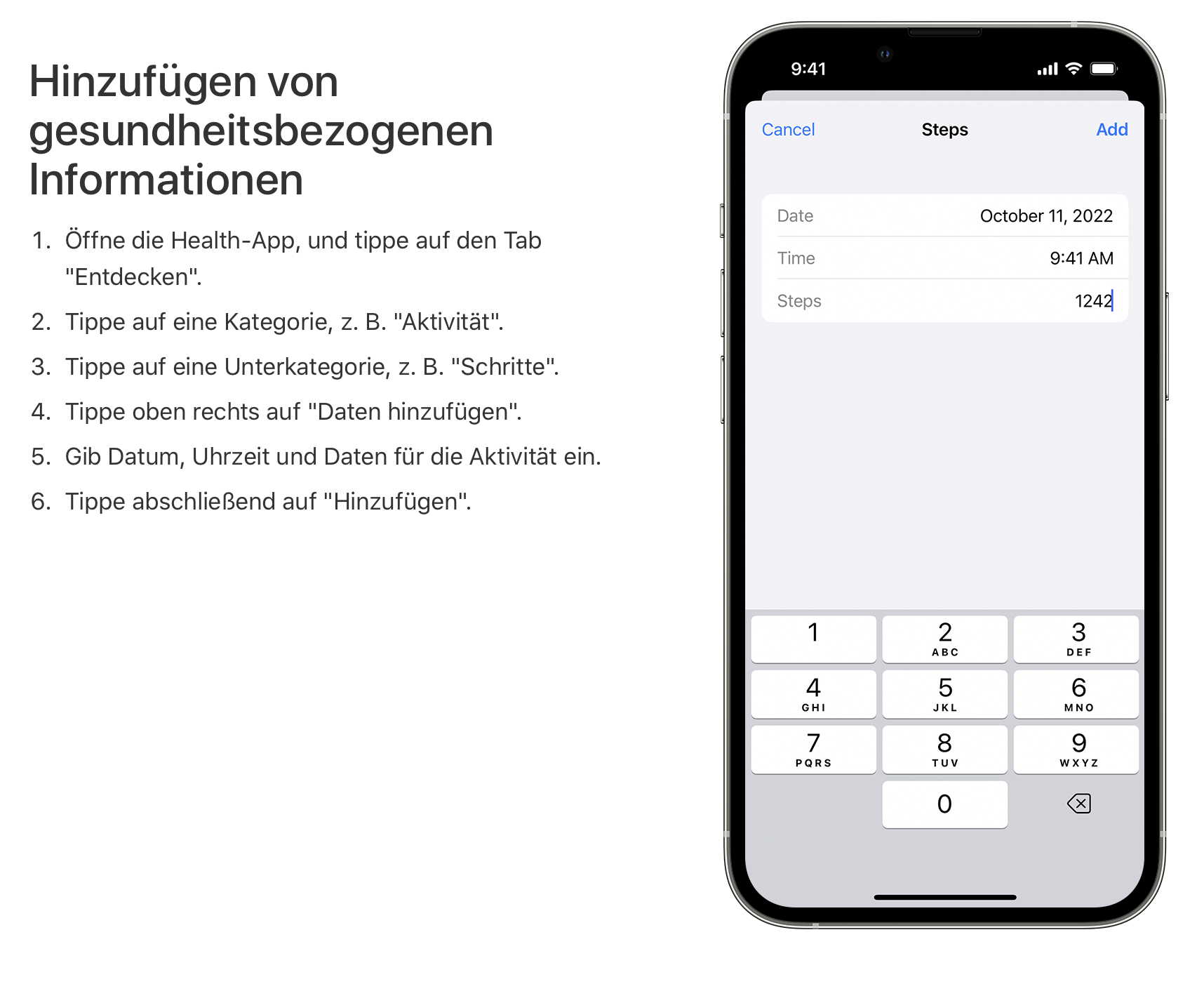Ich habe auch schon versucht, das Workout in Apple Health zu löschen und das geänderte neu zu synchroniserien, aber auch das funktioniert nicht. Ich finde keine Möglichkeit ein vergangenes Workout manuell nach Apple Health zu spielen.