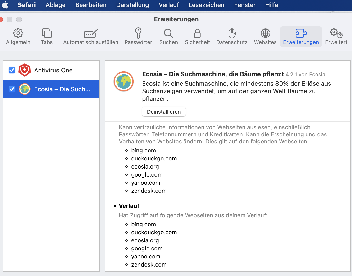 Meine Sicherheitssoftware Antivirus One kann nichts entdecken.
