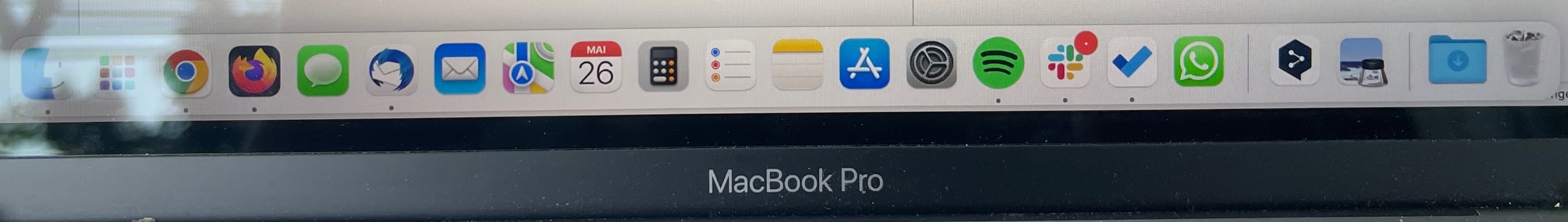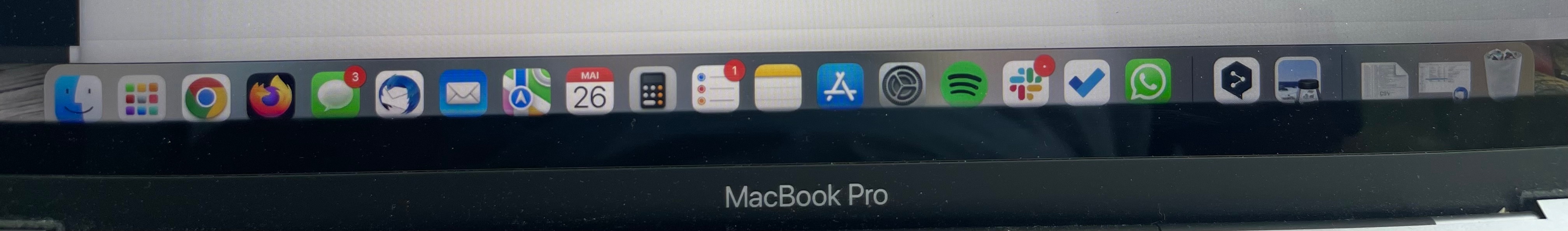 ich habe meinen MacBook Pro seit 2016/17. Wenn ich mein MacBook Pro starte werden die Programme als offen dargestellt.. wie gewohnt. Nach einer Weile (20min) wird ein schwarzer Balken davor gelegt und schneidet somit ein bisschen vom Display ab.