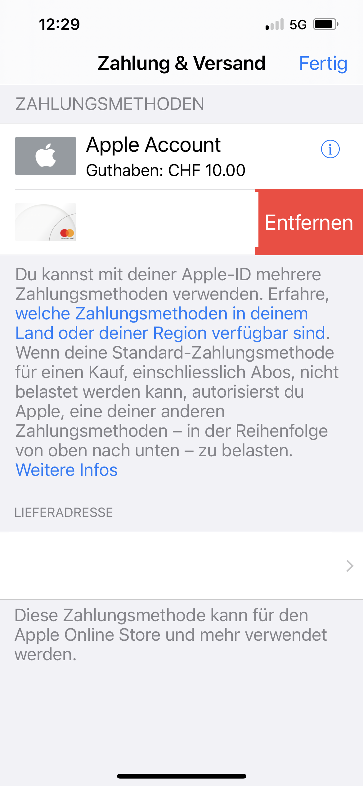 ich schaffe es nicht diese tu entfernen einmal Apple 10fr. entfernen einmal mastercard entfernen.