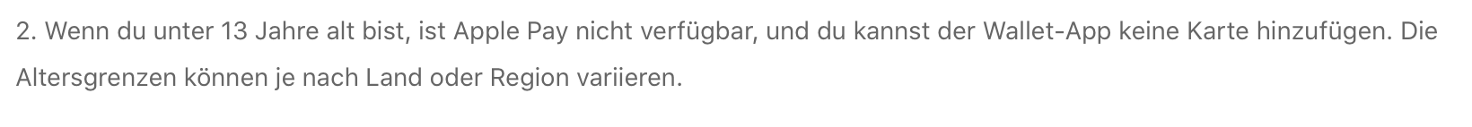 Apple Pay für ein Kind im Ausland einstellen