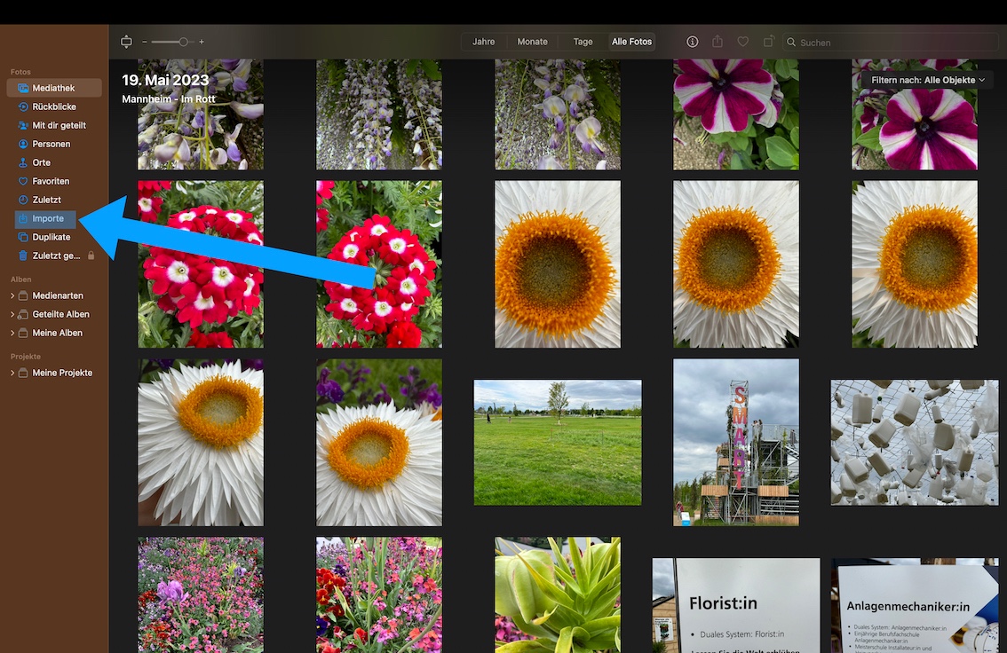 die Fotos erscheinen auch nicht direkt unter "Fotos" sondern wie von Leonie beschrieben unter "Importe"