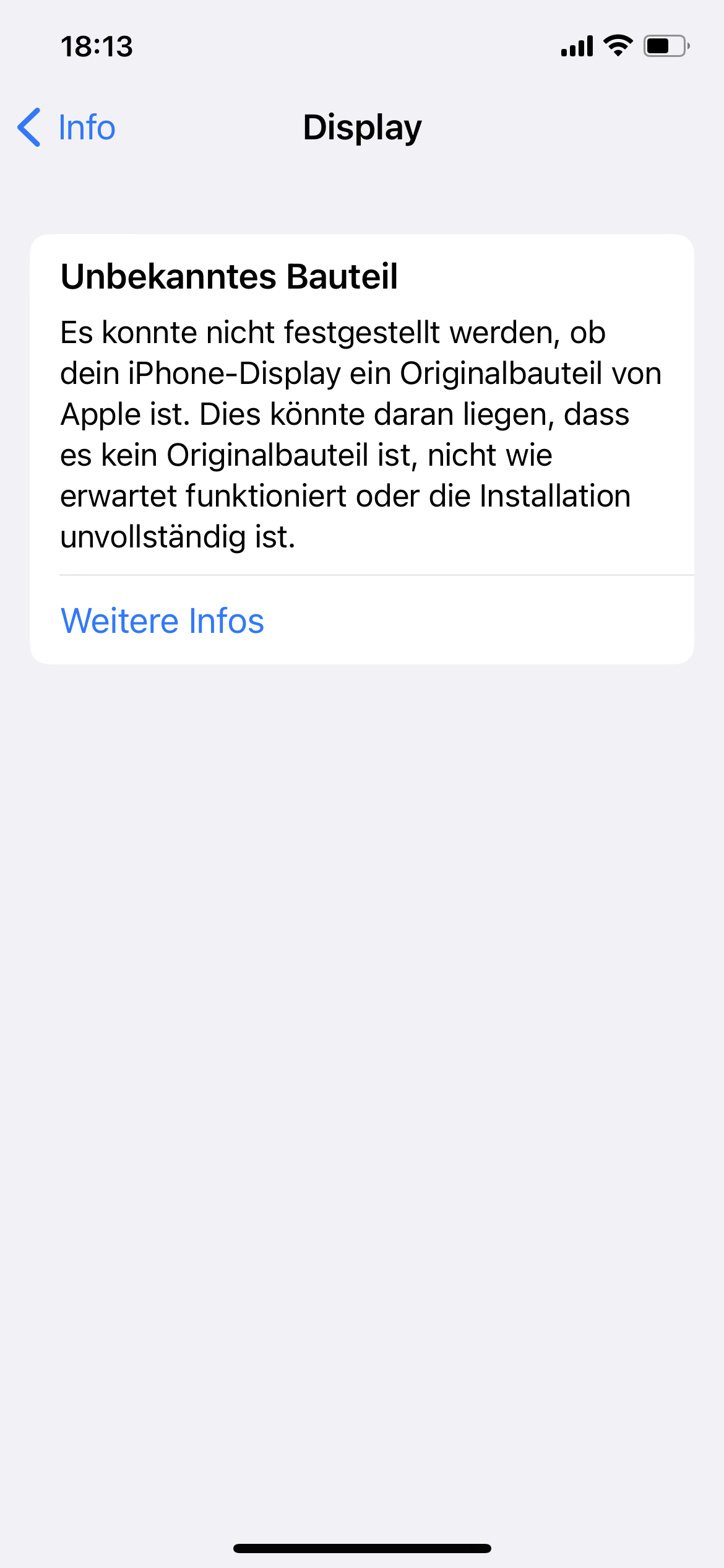 Aber beachte, dass die Meldung jedes Mal erscheinen kann, wenn du dein iPhone neu startest oder ein iOS-Update durchführst, da das Betriebssystem erneut versucht, das Display zu authentifizieren.