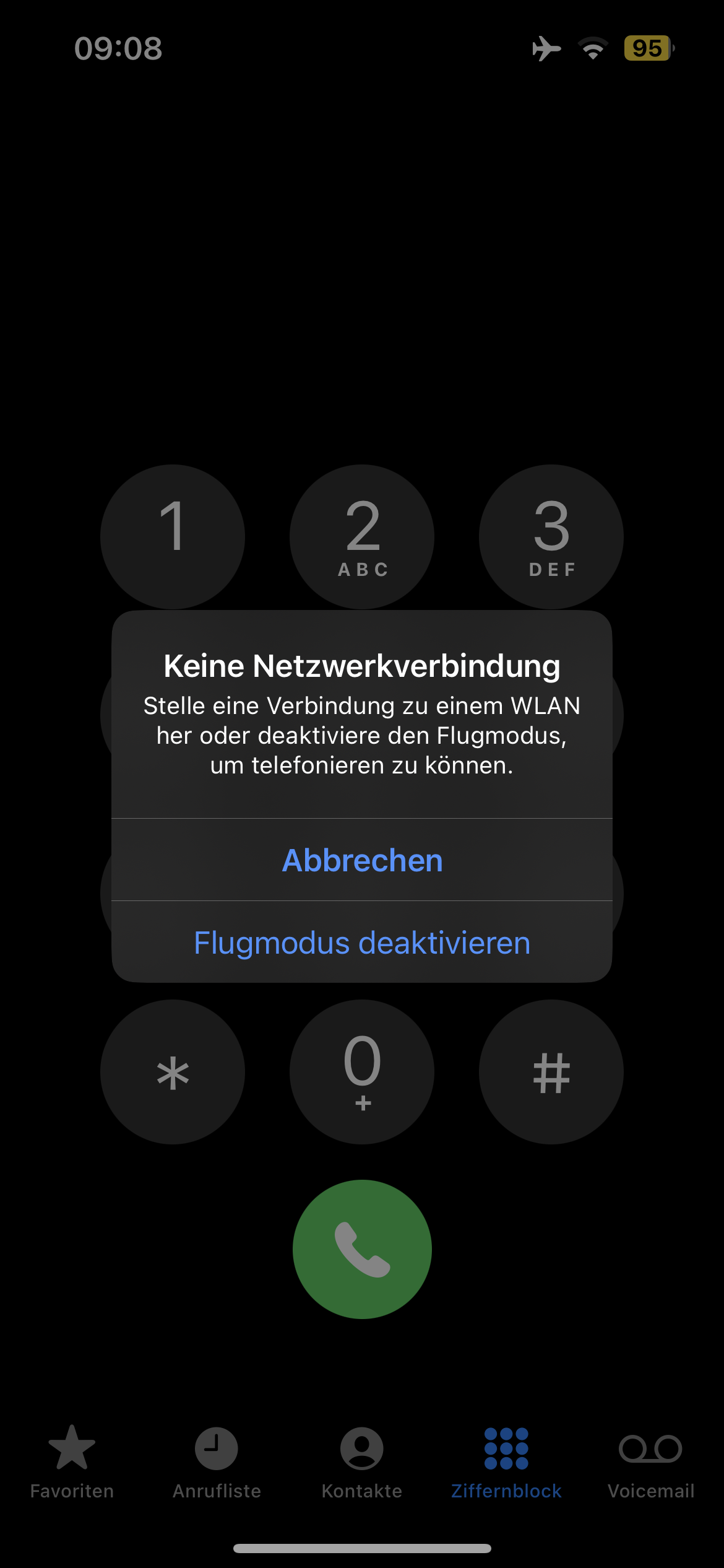 WLAN Anrufe im Flug Modus funktioniert nicht mehr