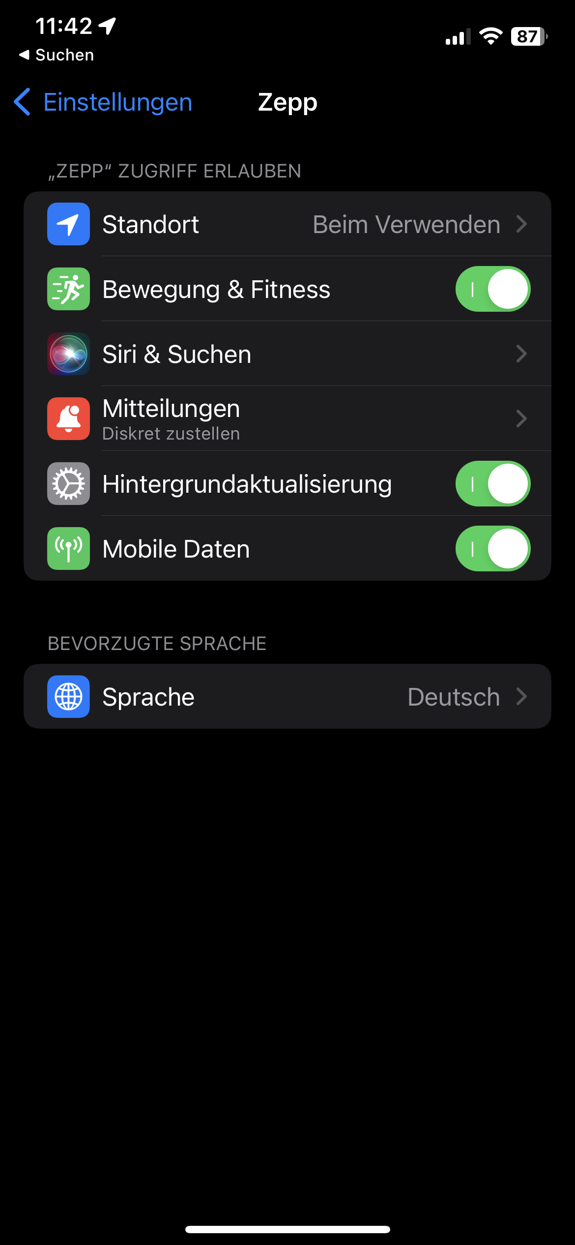 Hallo, bei meinem iPhone 12 ist seit einiger Zeit (nach einem Upgrade vermute ich) die Bluetooth-Freigabe ausgegraut. Alle Apps, die dort aufgelistet sind, haben keine Berechtigung, aber funktionieren mit Bluetooth.[Bild 1]. Auch ist bei den App-Einstellungen die Bluetooth-Freigabe richtig angezeigt, aber ausgegraut. [Bild 2]. Bei anderen Apps, hier als Beispiel die Zepp App, die sich mit meiner Personenwaage verbinden will, ist erst gar keine Bluetooth-Einstellung vorgesehen. [Bild 3]. Und ich bekomme in der App angezeigt "Aktiviere die Bluetooth-Berechtigung, um das Gerät zu verbinden". Bei einem iPhone 11 ist das alles richtig und funktioniert. Die Apps wurden komplett gelöscht und neu installiert, ohne Erfolg.