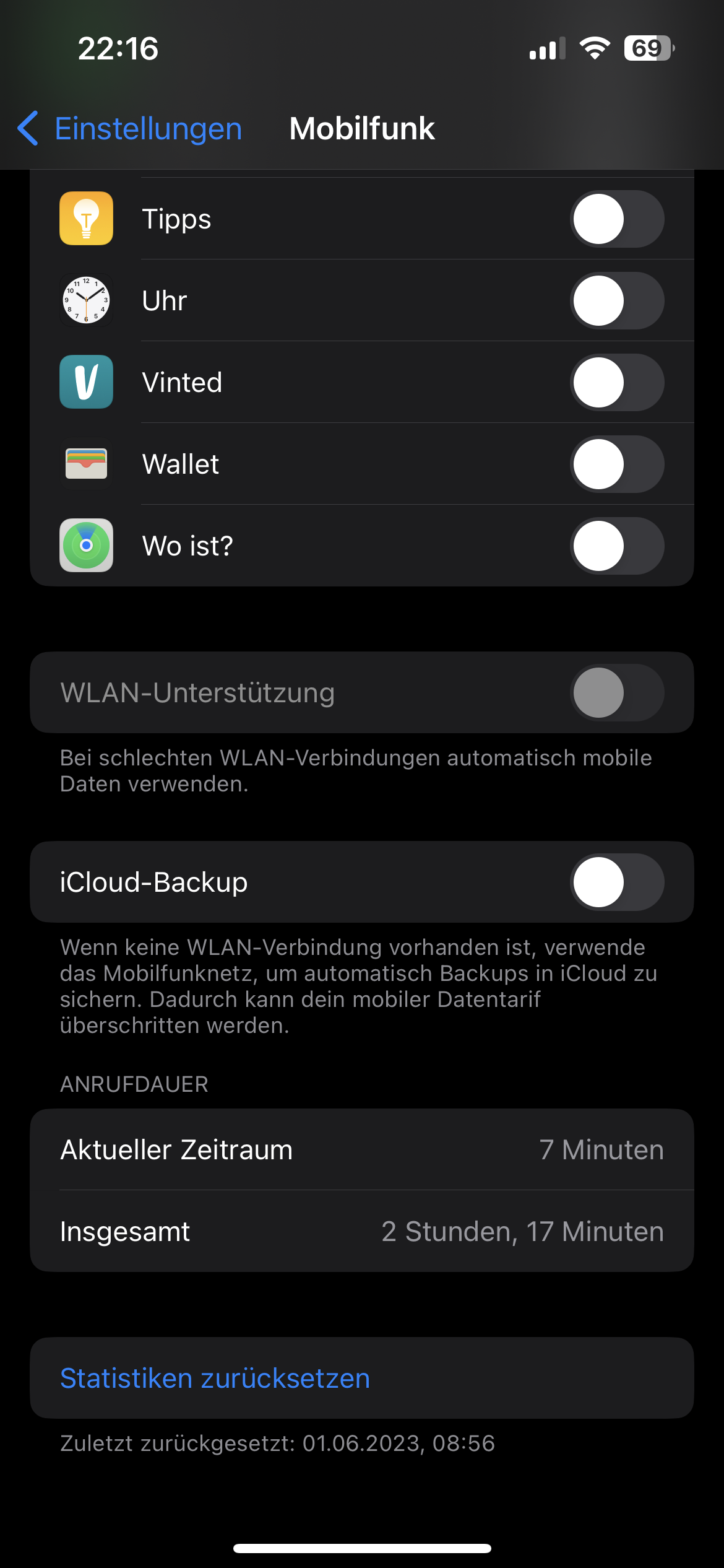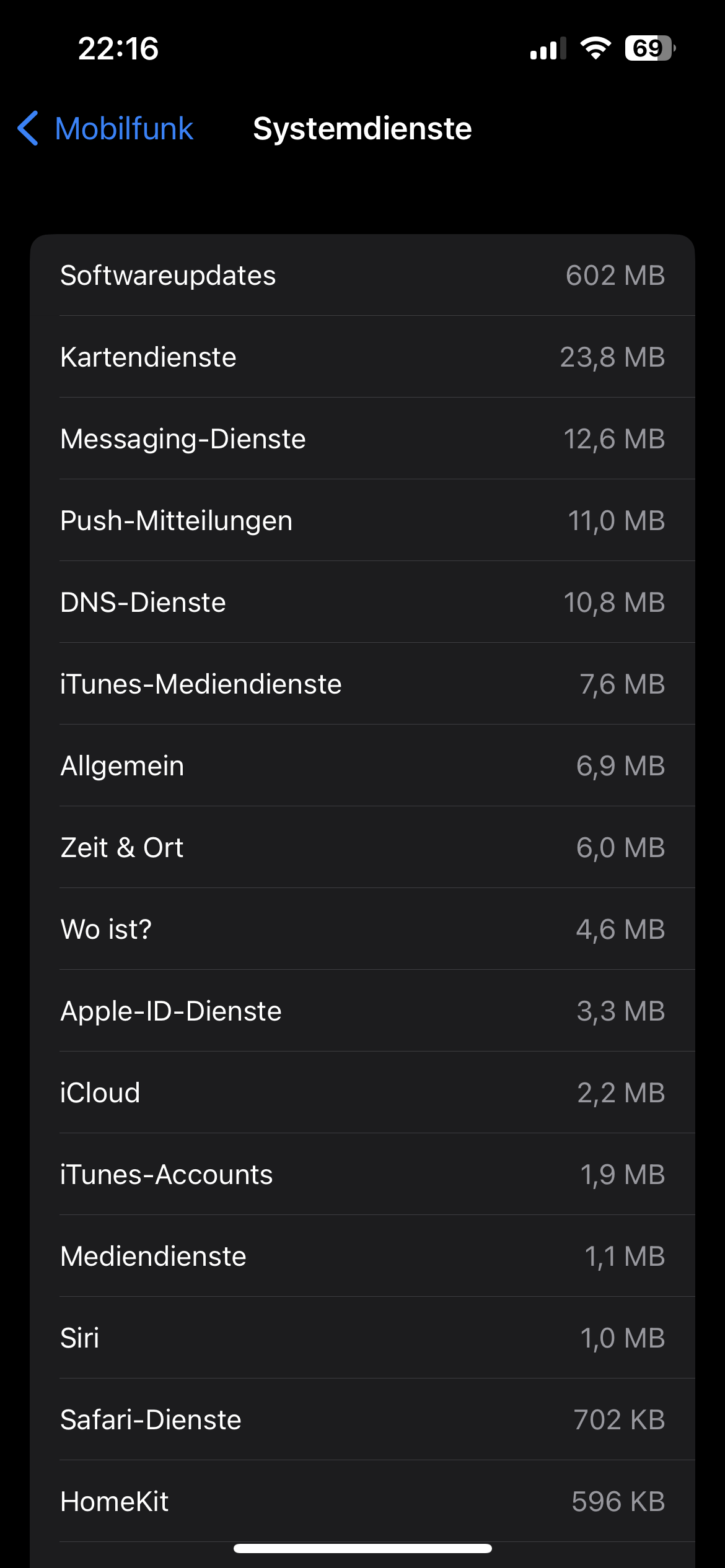 Mein iPhone 13 Pro hat unter IOS 16.5 (und vorherigem OS) seit Monaten einen extrem hohen Verbrauch meiner Mobilen Daten von Systemdienste/Softwareupdate. Da ich einen relativ kleinen Mobilfunkvertrag über 2 GB habe, sind meine Mobilen Daten oft schon innerhalb der ersten Tage des Monats verbraucht, da (z.B. jetzt schon!) über 700 MB von Systemdienste/Softwareupdate seit dem 1. Juni 2023 verbraucht wurde. WLAN - Unterstützung ist deaktiviert, sowie automatische Updates. Datensparmodus ist aktiviert.