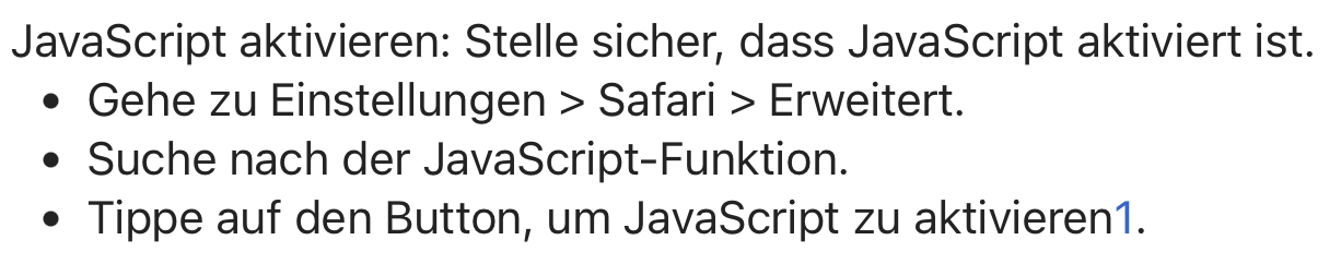 Bitte beachte, dass nicht alle Websites gleich erstellt werden und einige möglicherweise spezifische Einstellungen oder Funktionen benötigen, um korrekt angezeigt zu werden. Wenn du weiterhin Probleme hast, könnte es hilfreich sein, sich an den Apple Support Tel.: 0800 6645 451 (DE) zu wenden.