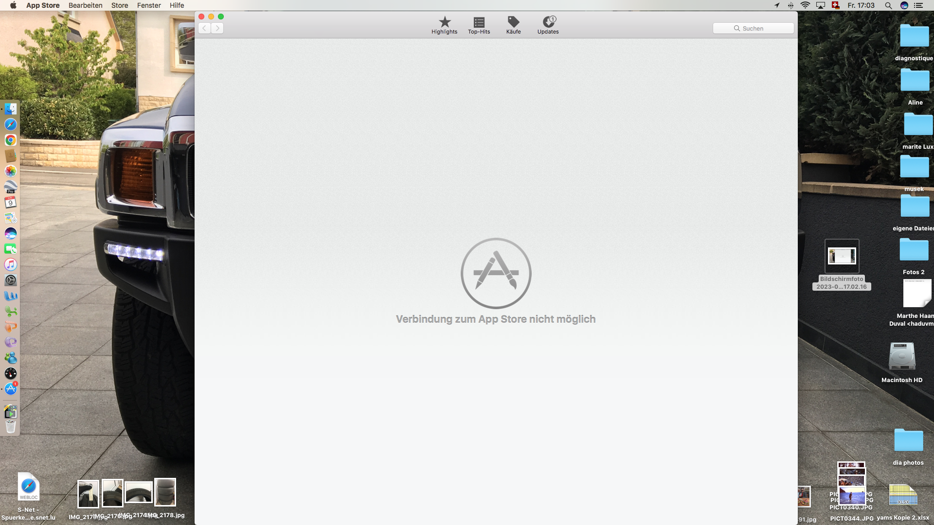 Danke für Ihre Antwort, ich habe mehrere Computer, alle von Apple, auf allen PCs funktioniert Apple Store, es handelt sich um mein iMac Sierra deen ich wenig benutze, Apple Store öffnet und zeigt ein update an, doch nichts tut sich beim klicken, was mir aufgefallen ist dass ich kein Update für diesen PC mehr machen kann. Mit 75 Jahren bin ich da überfordert.