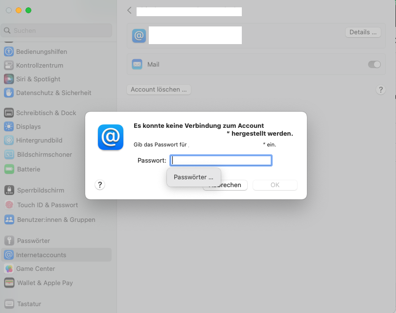 Wenn ich in der Systemsteuerung bei Internetaacounts löschen drücke, passiert dies: