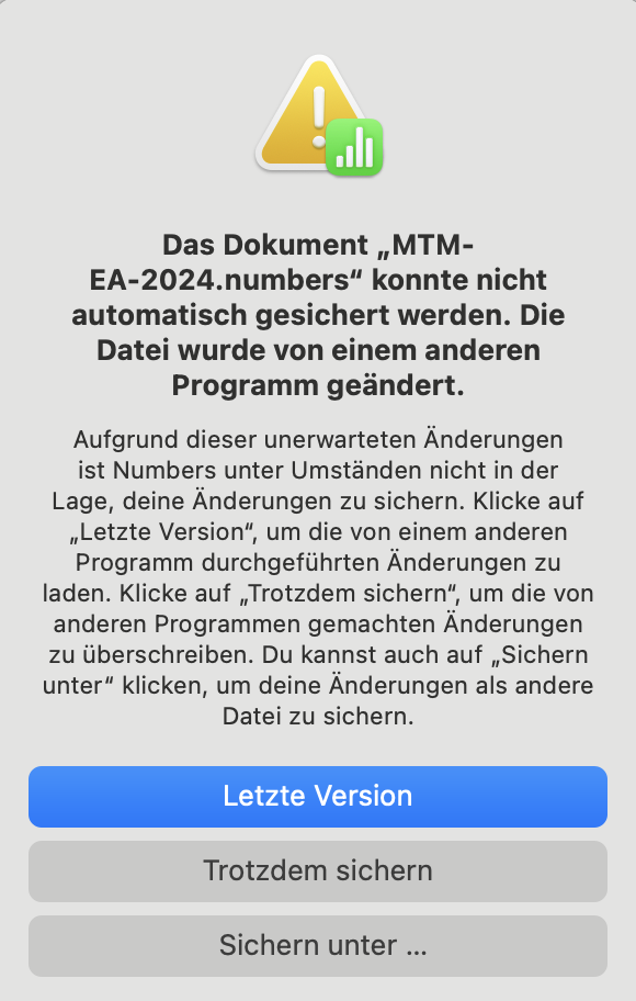 Beispielsweise, weil man das Pages-Dokument auf einem Medium abgelegt hat, das nicht mit APFS formatiert ist und somit kein automatisches Speichern unterstützt. Dann wird man periodisch gefragt, ob man das Dokument auf einem anderen Speicherort speichern oder auf die vorherige Version zurücksetzen möchte und das ist unheimlich lästig.