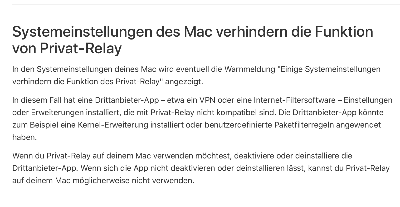 Warum wird plötzlich Private-Relay nicht mehr unterstützt?