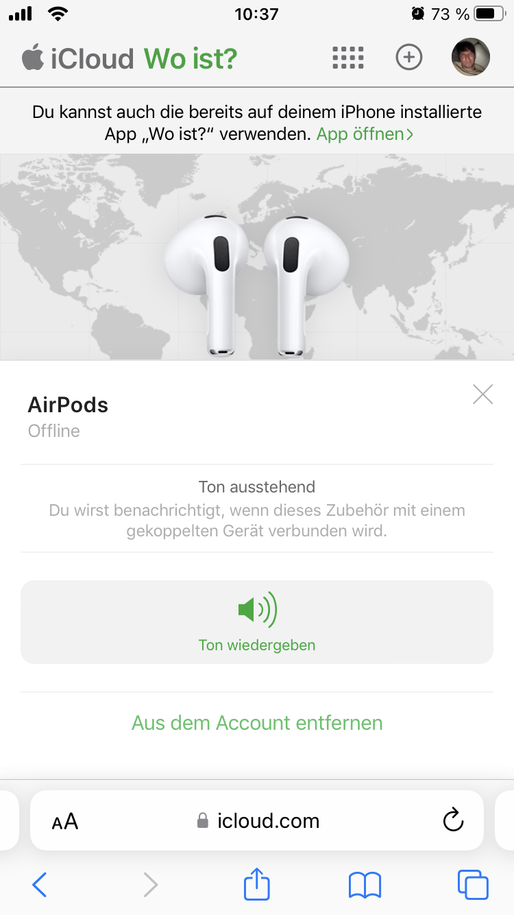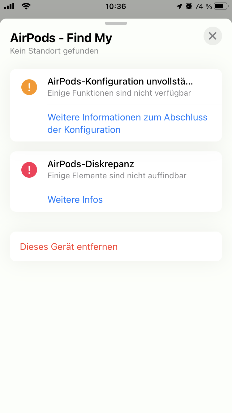 Suche meine Air Pods , sind aber nicht in Wo ist abgelegt.