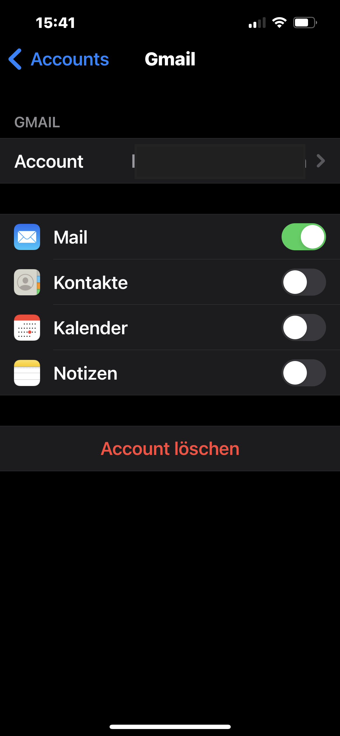 kannst du später auswählen, ob du Mail, Kontakte, Kalender oder Notizen hinzufügen möchtest.