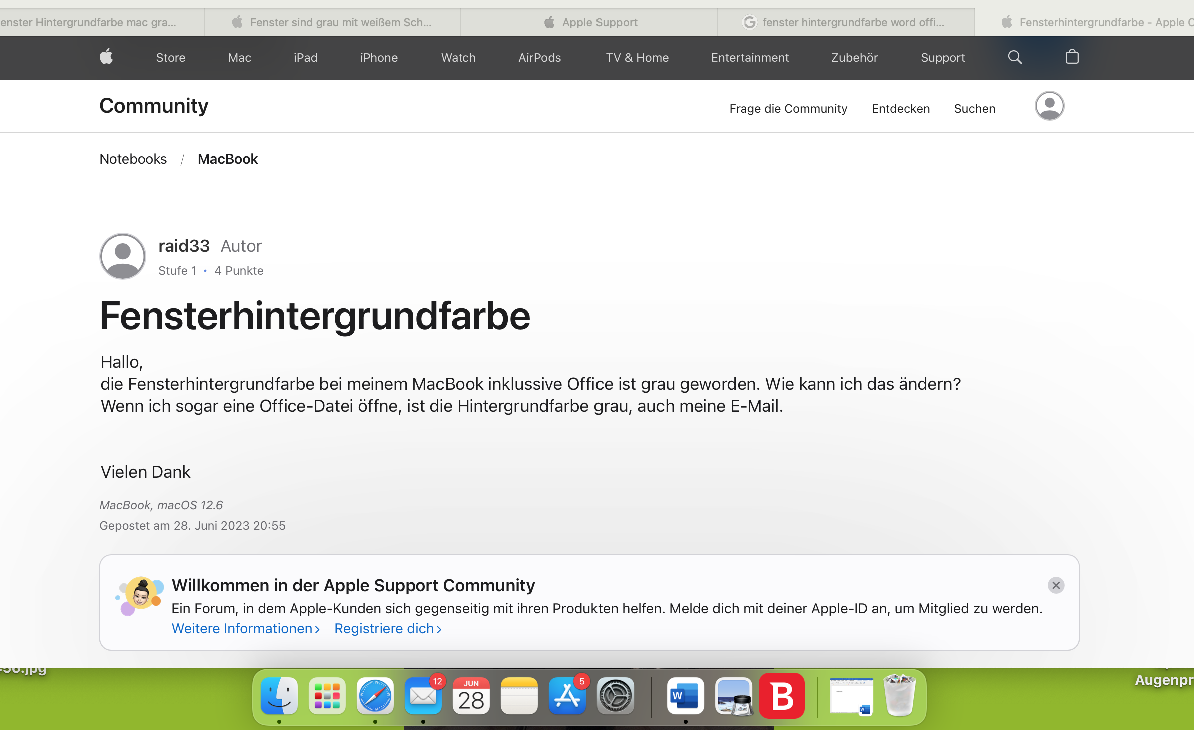 die Fensterhintergrundfarbe bei meinem MacBook inklussive Office ist grau geworden. Wie kann ich das ändern?
