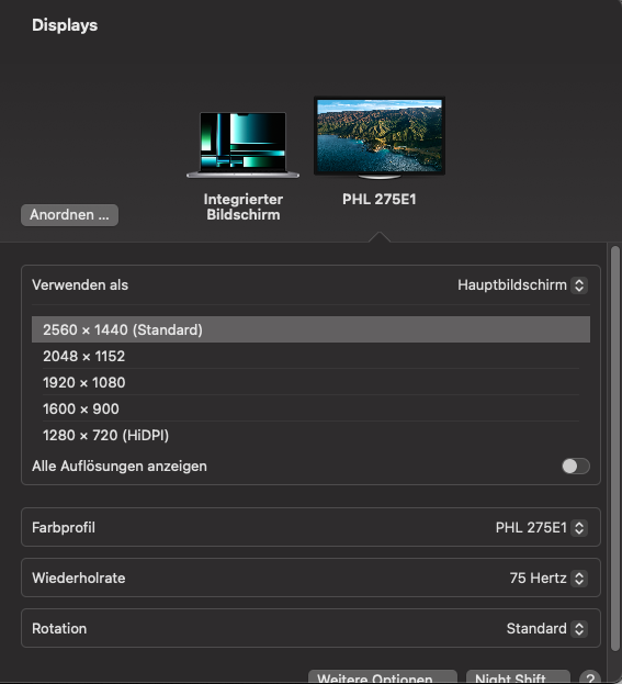 I have a 2023 Macbook Pro 14" M2 and have it connected to a docking station over USB-C. From the docking station, there are 2 external monitors from the same type connected, both Philips. One via DP and the other via HDMI.