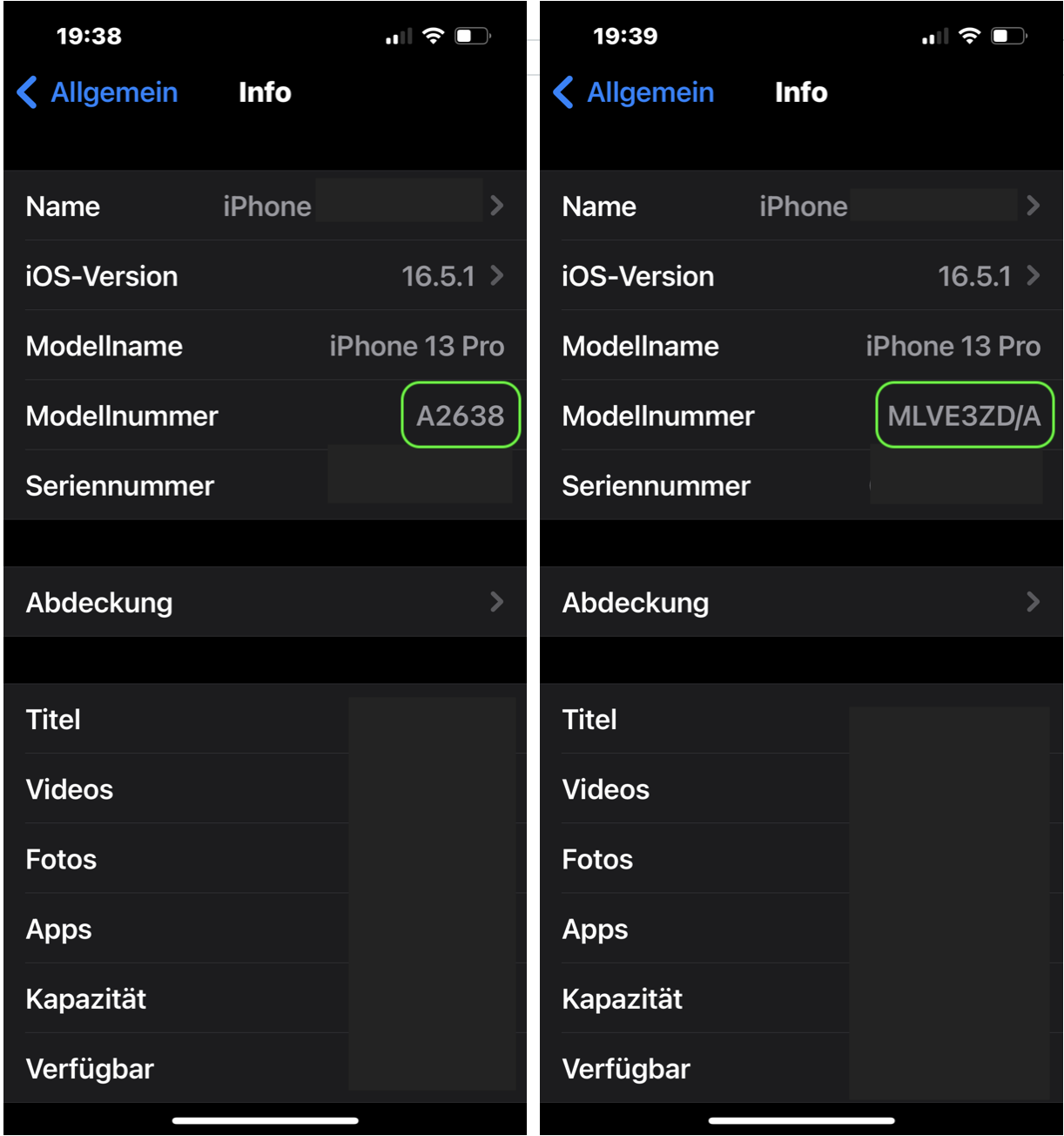 Hallo zusammen, eine Idee hätte ich da noch. Mir ist vor einiger Zeit mal folgendes aufgefallen. Als ich die Modellnummer zu einem iPhone gesucht habe, bin ich dem üblichen Weg gefolgt.