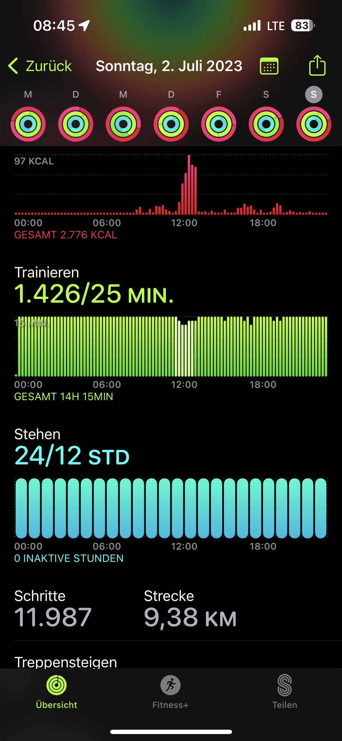 Ich habe seit längerem das Problem, dass meine Apple Watch ein Training und Stehstunden aufzeichnet und dies dann auch in der App Fitness aufgezeichnet wird. Ich habe ein iPhone 14 Pro sowie eine Apple Watch Ultra und zusätzlich benutze ich noch eine SE 2020. Alles ist zum jetzigen Zeitpunkt auf dem neuesten iOS Stand.