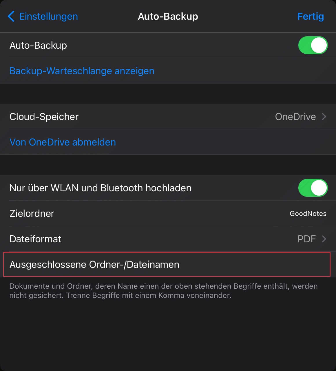 Hi, ist es möglich nur bestimmte Dokumente von Goodnotes in der I cloud zu speichern?