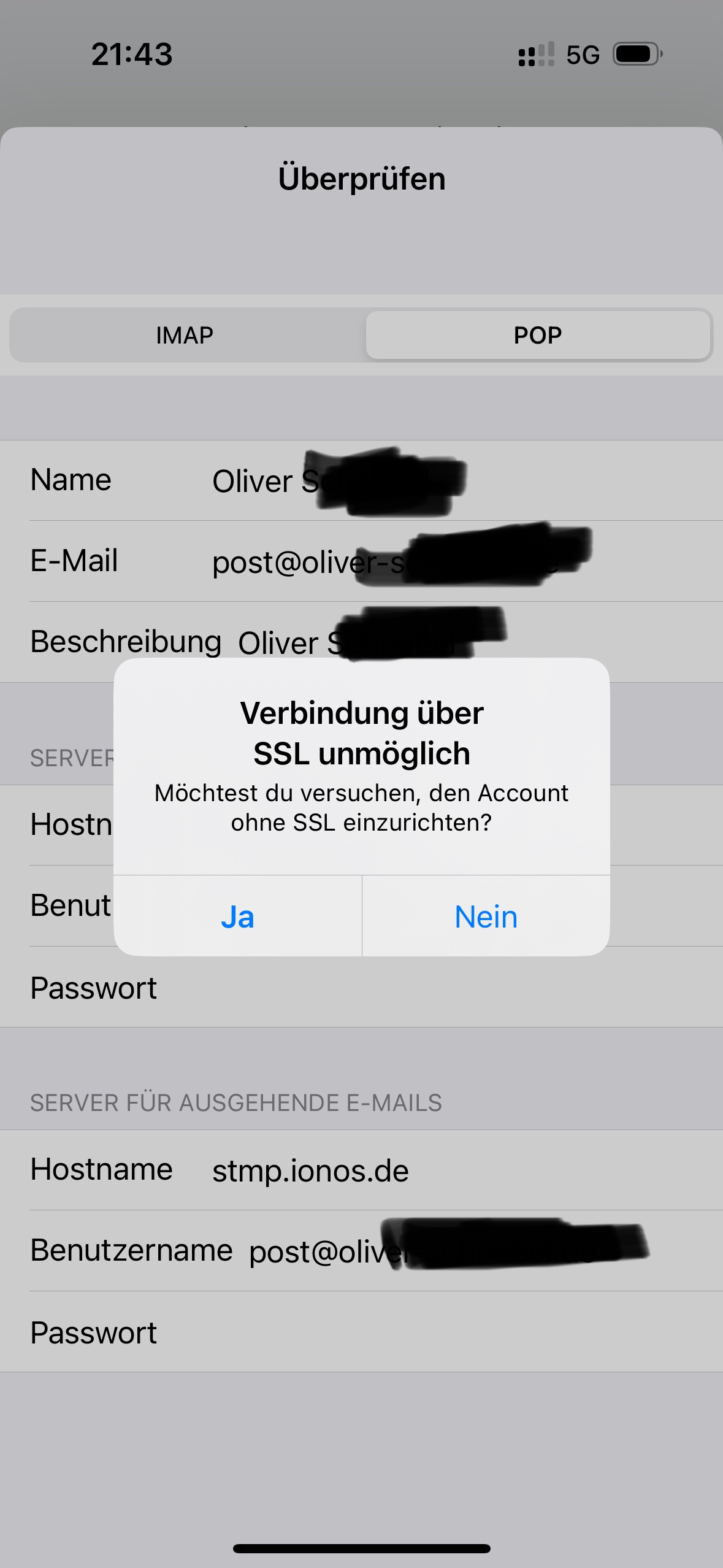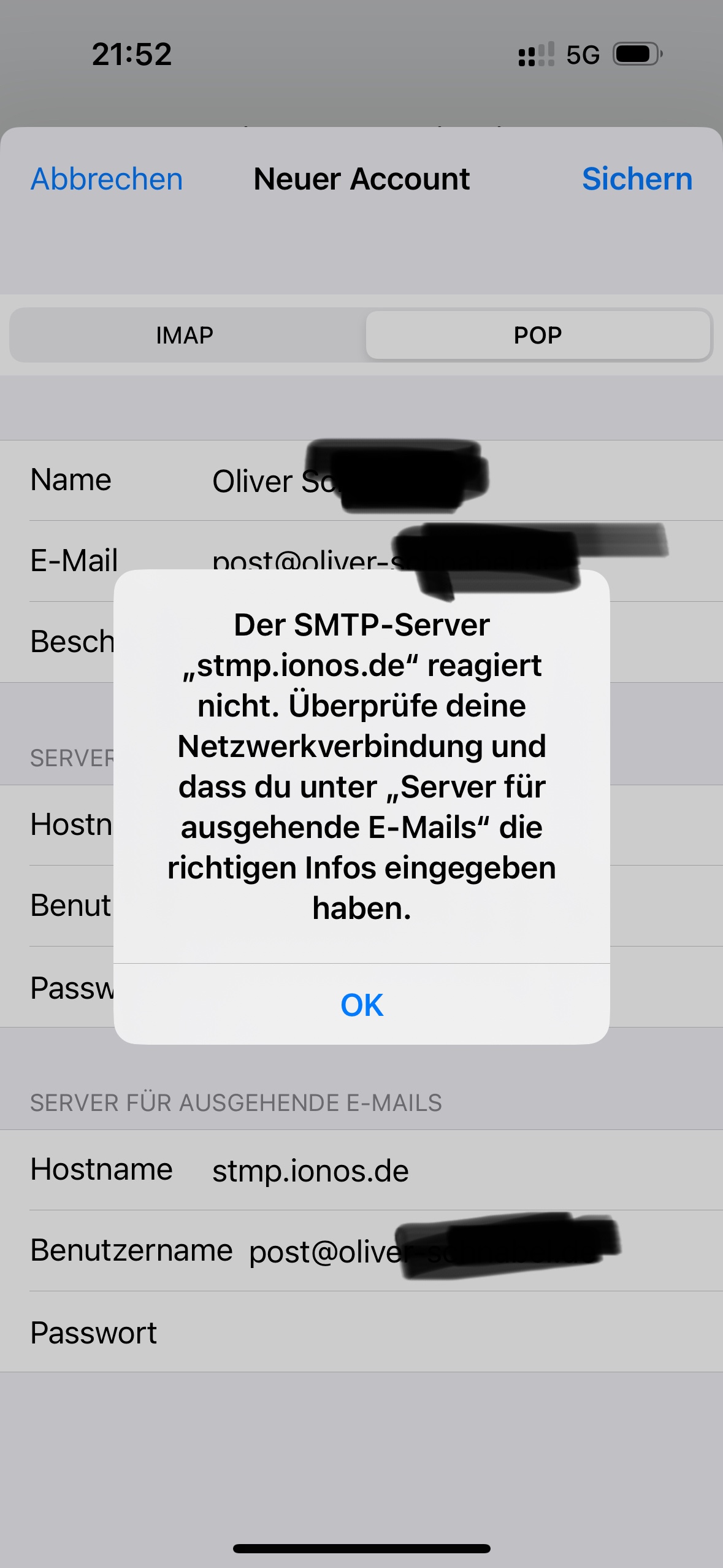 Ionos-E-Mail-Adresse einrichten geht nicht