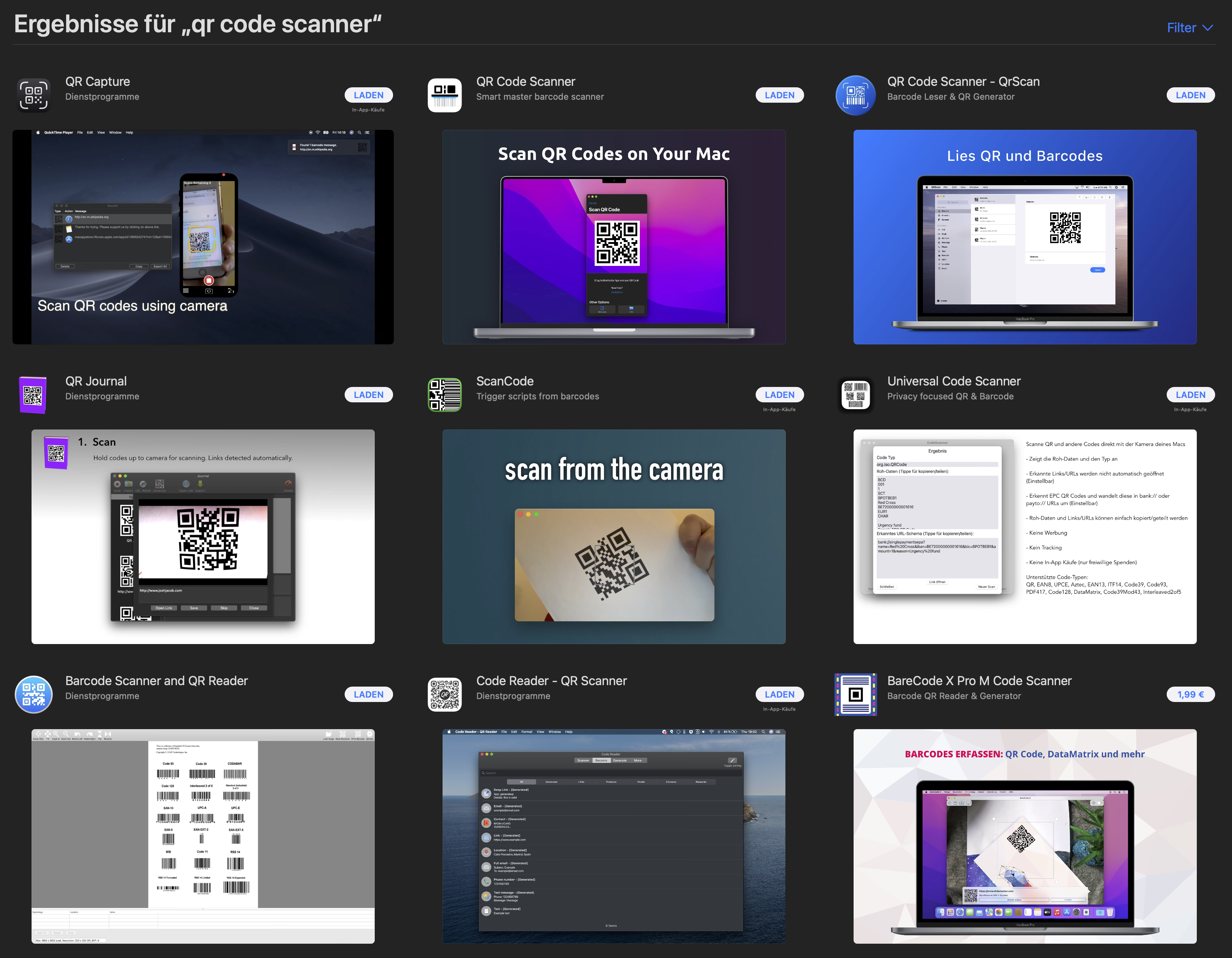 Die integrierte Kamera am iMac liest QR-Code spiegelverkehrt