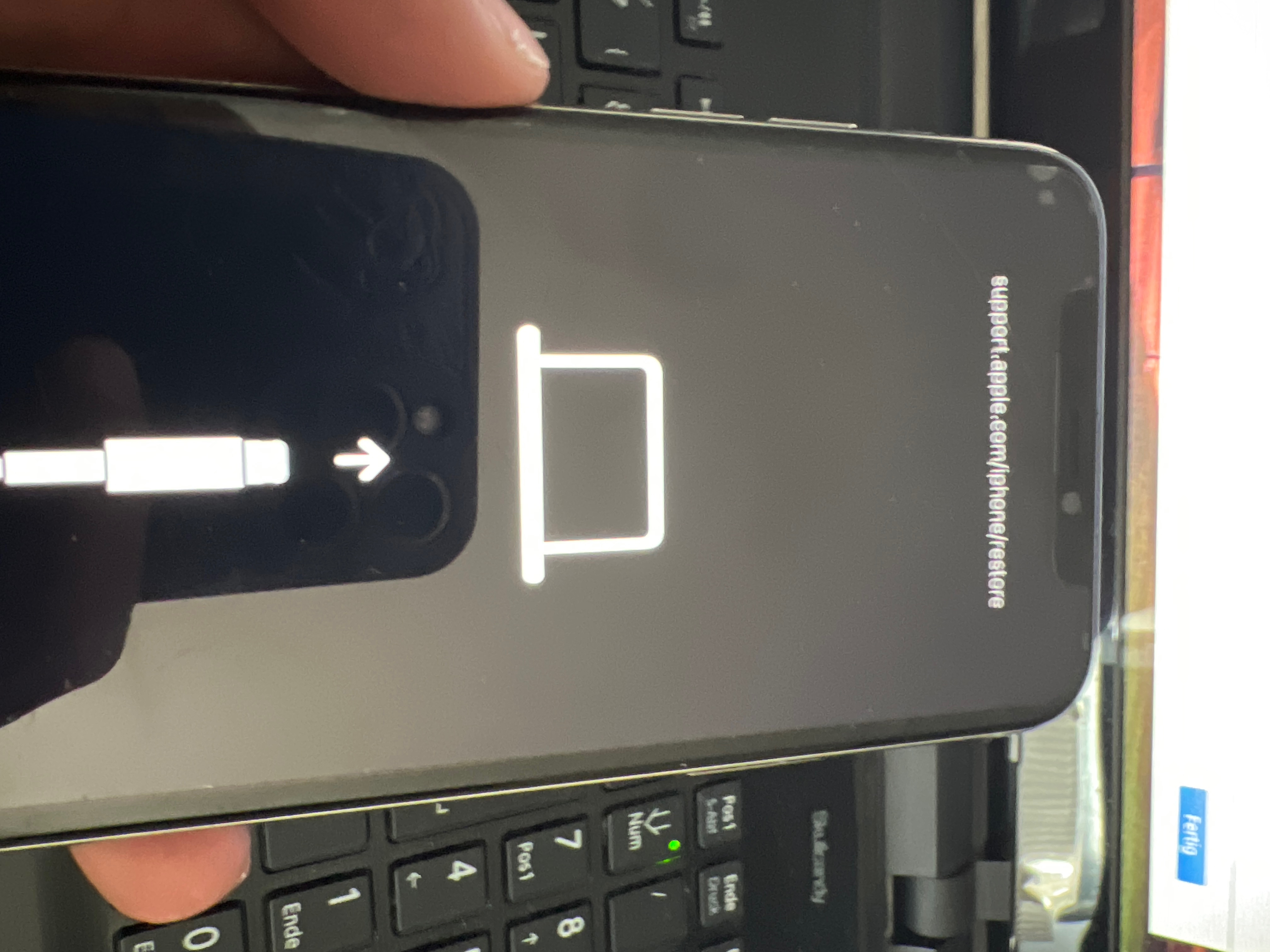 Das Gerät ist im DFU-Modus. In dem Zustand ist nur eine Wiederherstellung möglich.