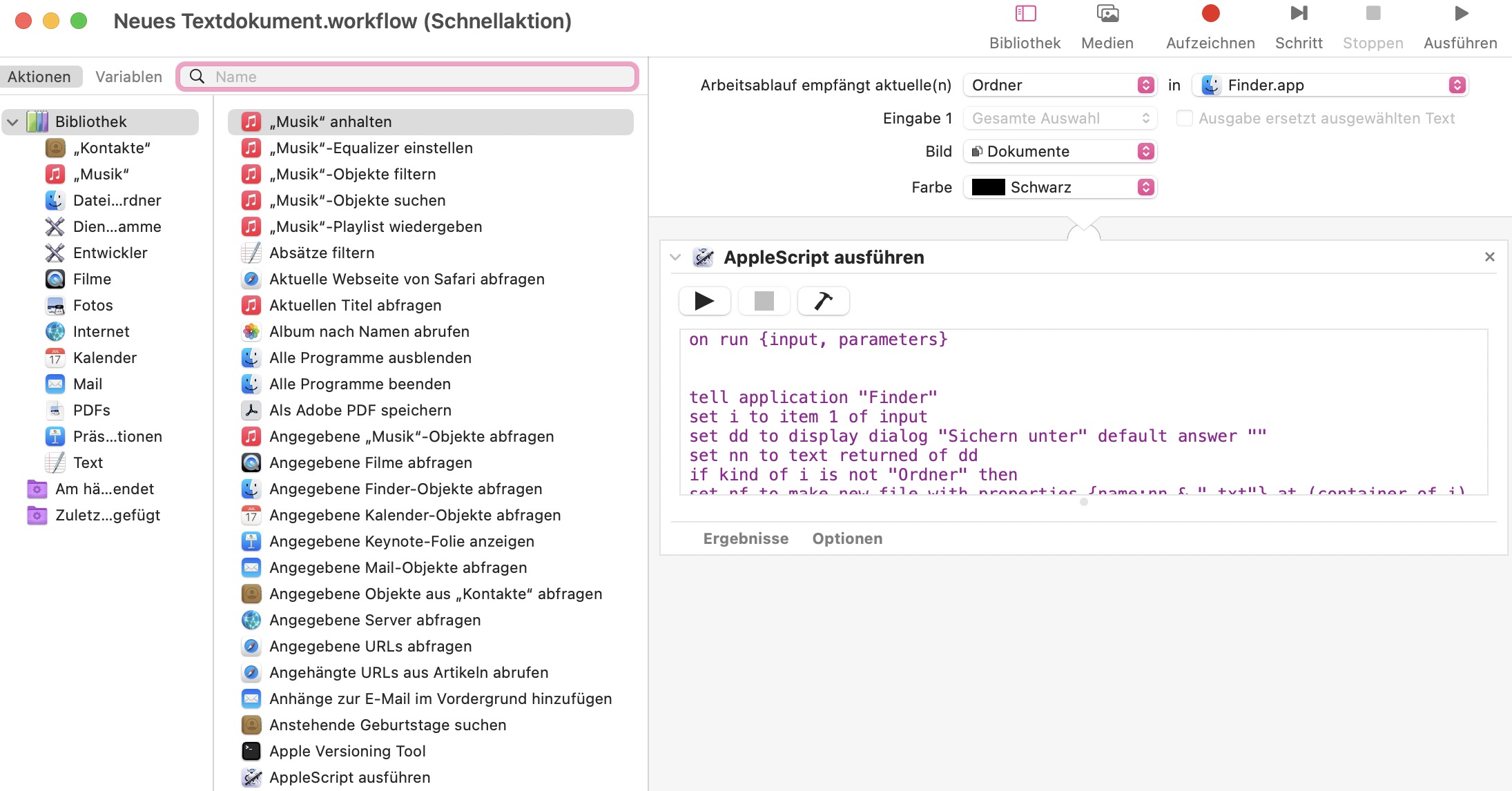 Automator: Per Rechtsklick neues Textdokument im aktuellen Ordner anlegen