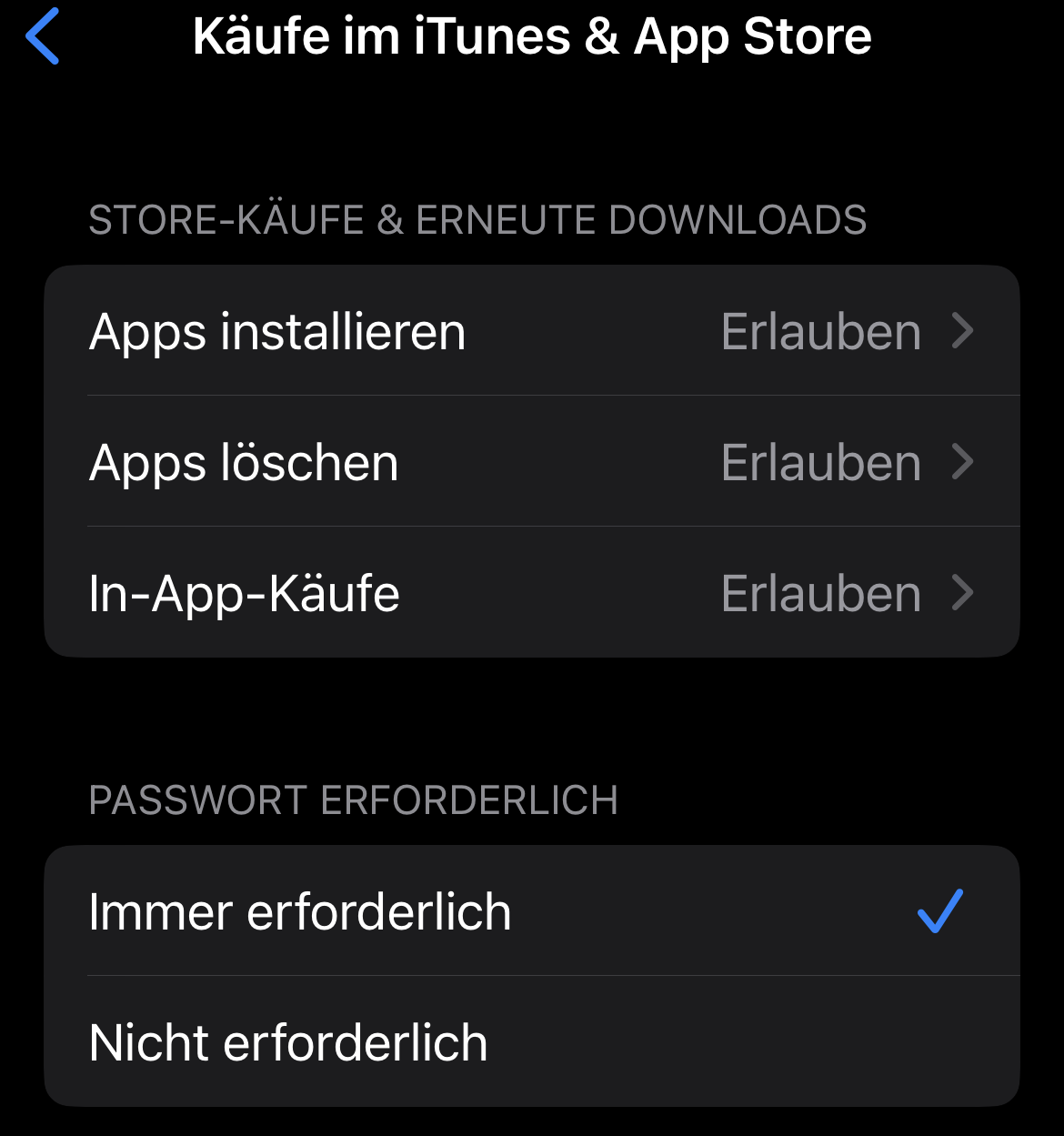 "Bildschirmzeit">"Beschränkungen">"Käufe im Itunes&Appstore">App löschen und dann erlauben