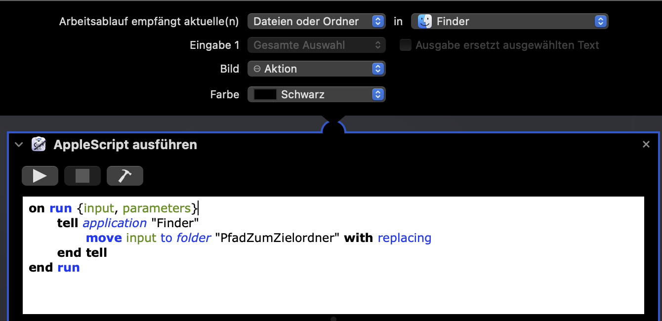 Dafür habe ich folgenden Workflow in Automator gebastelt: