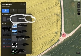 Es ist nicht so, das ich keinen Punkt anlegen kann, sondern dass ich nur den ersten Punkt anlegen kann und (manchmal) mit Nachnamen. Sobald Apple Karten erkennt, dass da ein Dorf in der Nähe es nimmt Apple Karten die Postleitzahl dieses Dorfes und speichert den Ort ab. Dann ist er meistens auch im Reiseführer drin wenn ich jetzt allerdings einen zweiten Ort zum Beispiel 10 km in der Nähe anlege und diesen Ort dem Reiseführer hinzufügen möchte, dann ist im Reiseführer bereits ein Haken, so als ob dieser neue. Tatsächlich schon im Reiseführer wäre. Manchmal verschwindet der Punkt und der dann zweite Ort kann dann hinzugefügt werden.