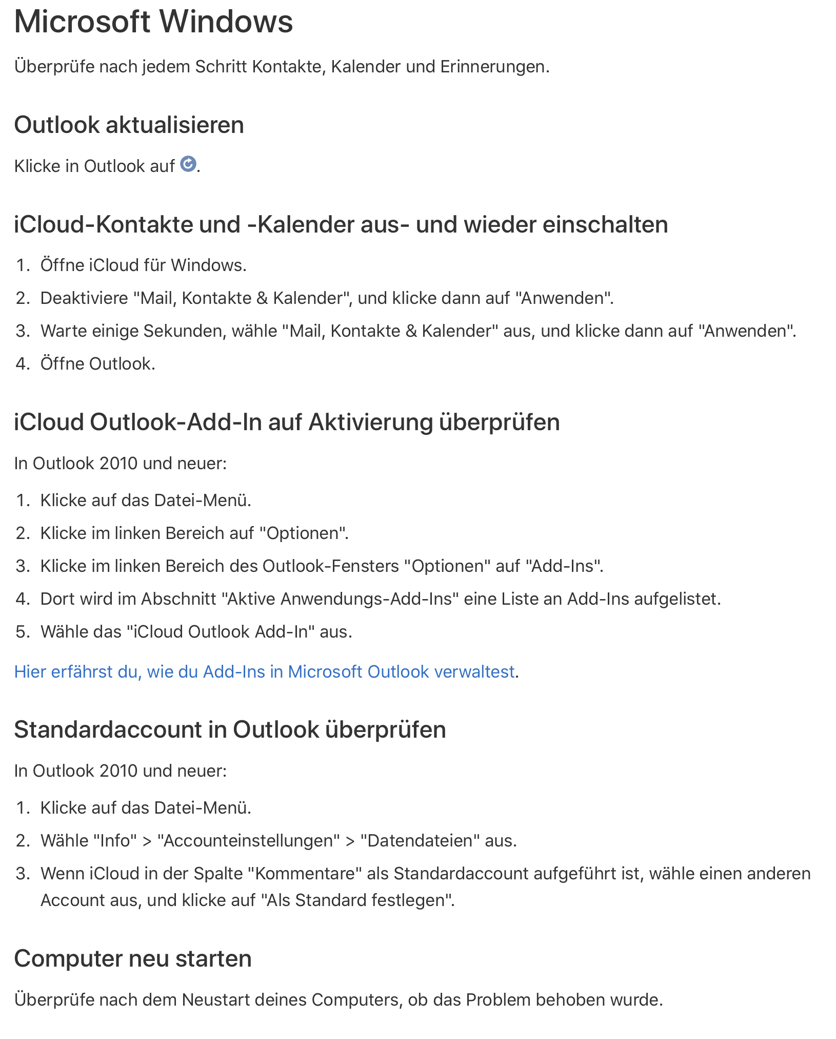 Das icloud Add-in erscheint nicht bei outlook, obwohl es in den Einstellungen aktiviert ist; email wird übertragen, aber Kalender wird nicht übertragen und synchronisiert; Habe schon alle Möglichkeiten durchprobiert, aber ohne Erfolg. Windows 11, Office 365