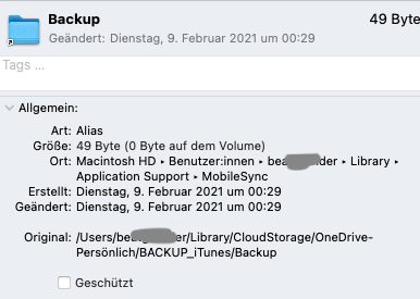1) Ich mache Backups meiner Apple Geräte auf dem Mac. Die bestehenden bisherigen anderen Speicherorte für "iTunes" Backup auf dem Mac werden nicht mehr erkannt. Wenn ich meine iPads und iPhones anschliesse, heisst es immer "kein Backup vorhanden". Dabei ist der Link nach wie vor vorhanden und dort hat es Backups drin.