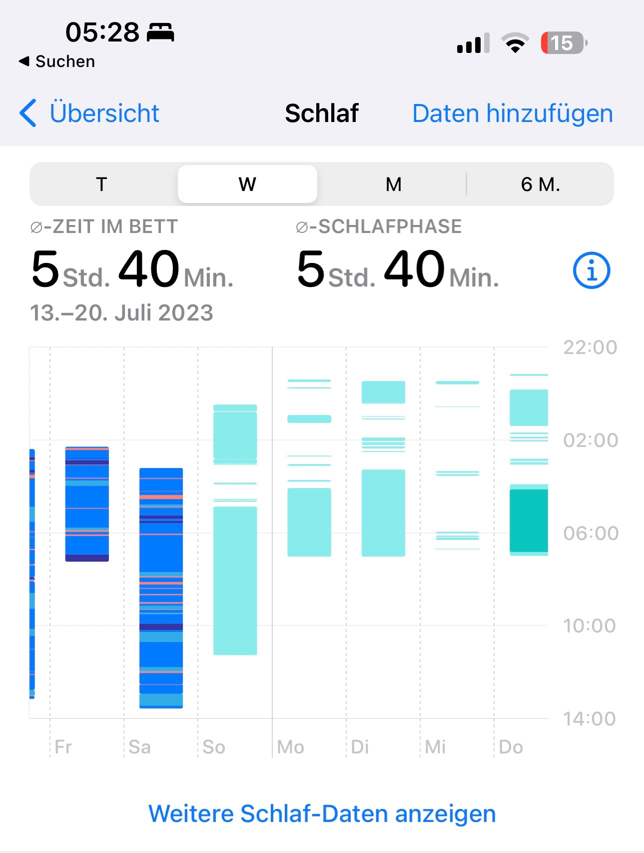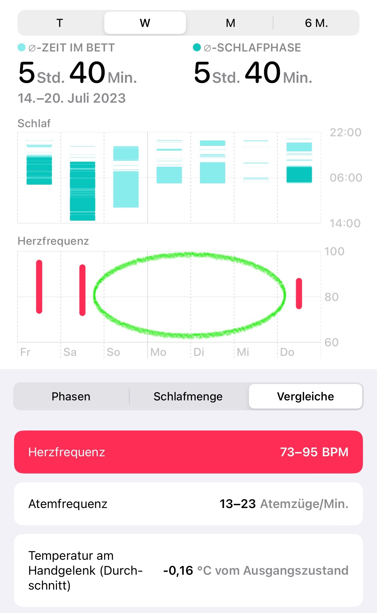 Hier sieht man, dass plötzlich ab Sonntag die Herzfrequenz bei Schlafdaten fehlt.