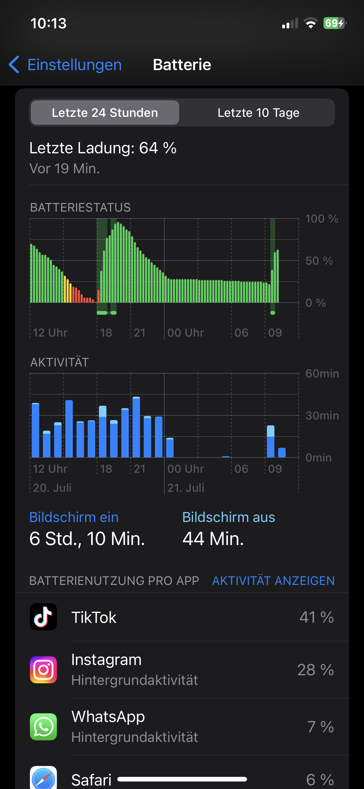 Wichtig wäre zu Erfahren, ob sich dein iPhone auch entlädt OHNE das du dein iPhone nutzt. Ist das der Fall würde ich von einem Problem ausgehen. Was sagen die Einstellungen über den Batteriezustand/Kapazität? (Einstellungen -> Batterie -> Batteriezustand & Ladevorgang)