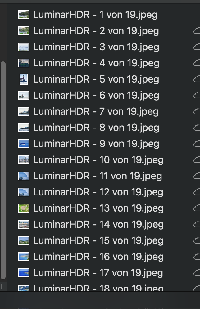 Ein Beispiel: ich habe Fotos von meinem Album "LuminarHDR " exportiert, und im Finder hiessen die Fotos mit den obigen Einstellungen dann so:
