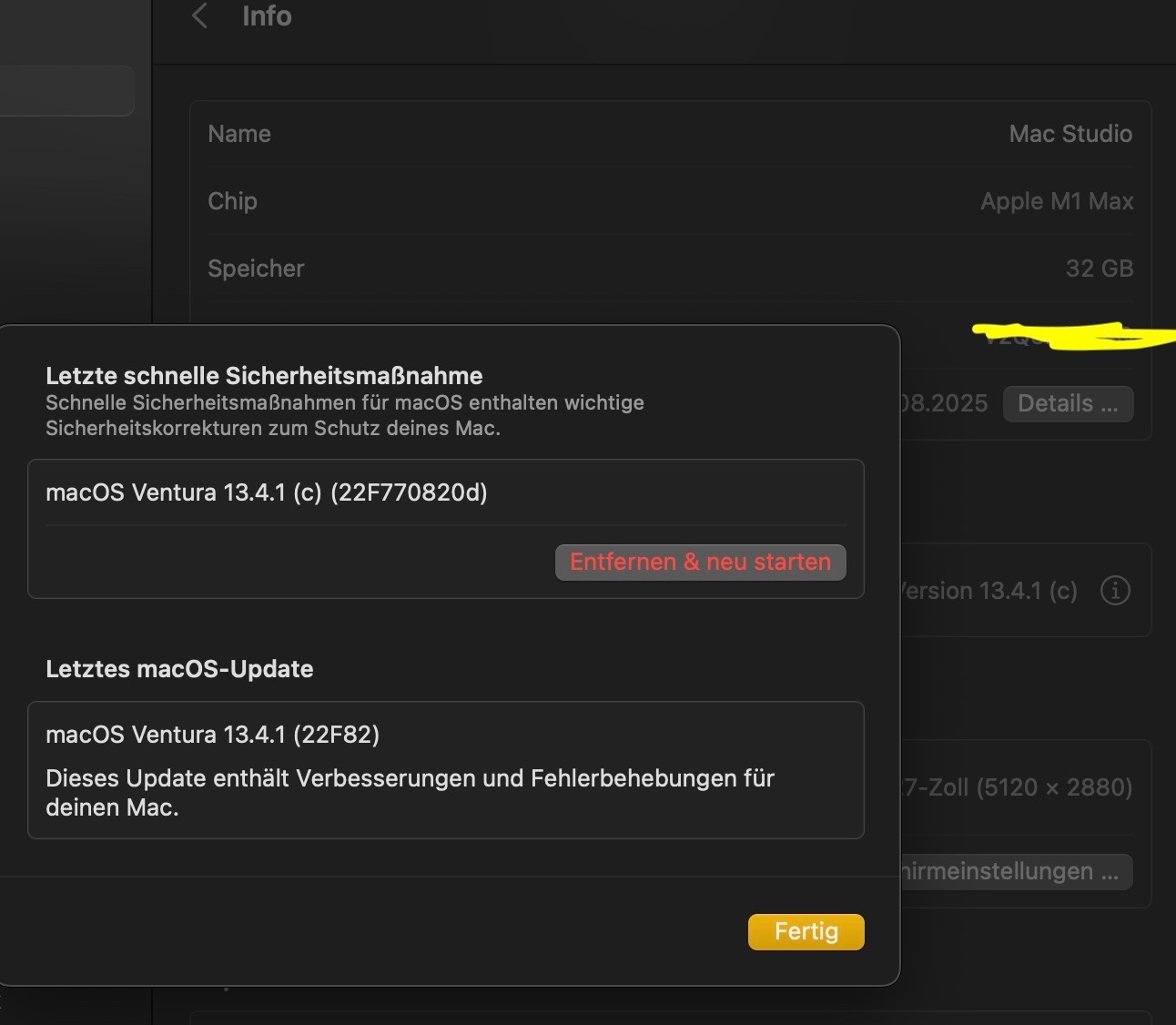 Sicherer Modus nicht möglich (Ventura 13.4.1. MacStudio & MacBook Air)
