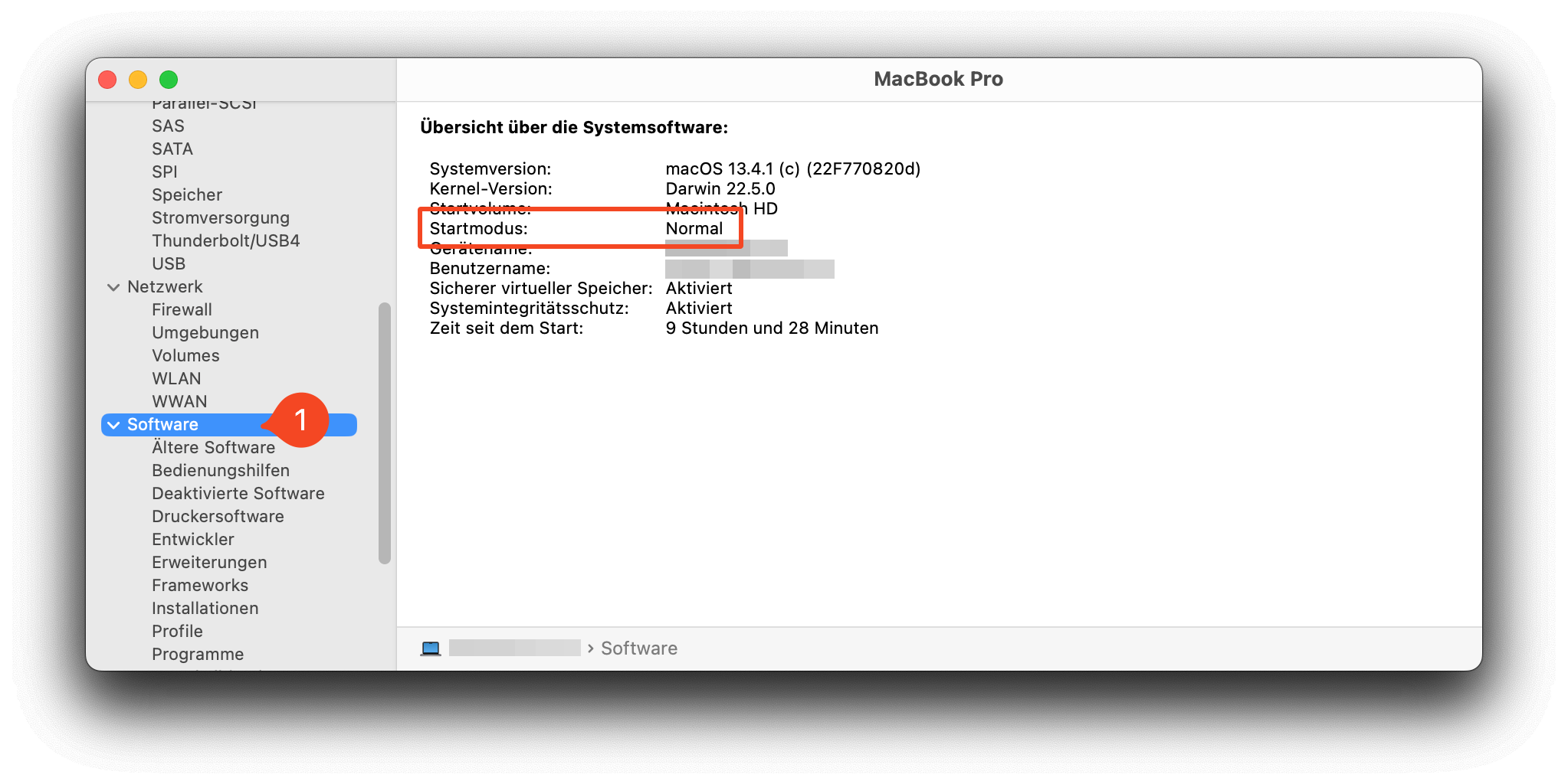 Auf der Support Seite (Starten deines Mac im sicheren Modus - Apple Support (DE) wird beschrieben, wie ich überprüfen soll, ob ich im sicheren Modus bin. Nur leider gibt es im Apple Menu keine Auswahl "Systeminformationen".