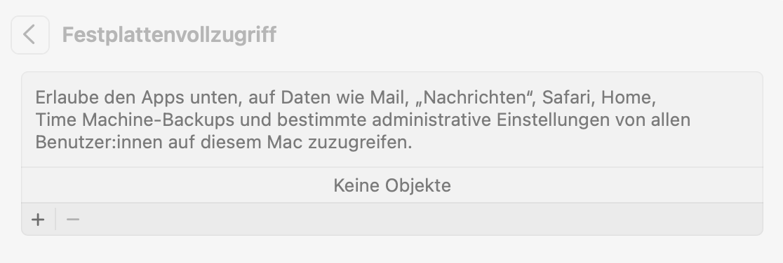 Seit einigen Tagen werden bei der Einstellung des Festplattenzugriffs keine Objekte mehr angezeigt