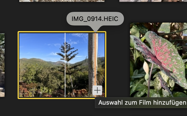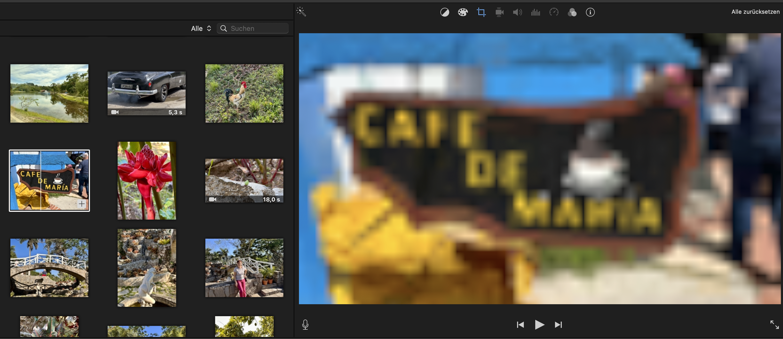 Oben rechts, bei der Bearbeitung (Ken Burns) ist das eigentliche Bild nur als Miniatur zu sehen.