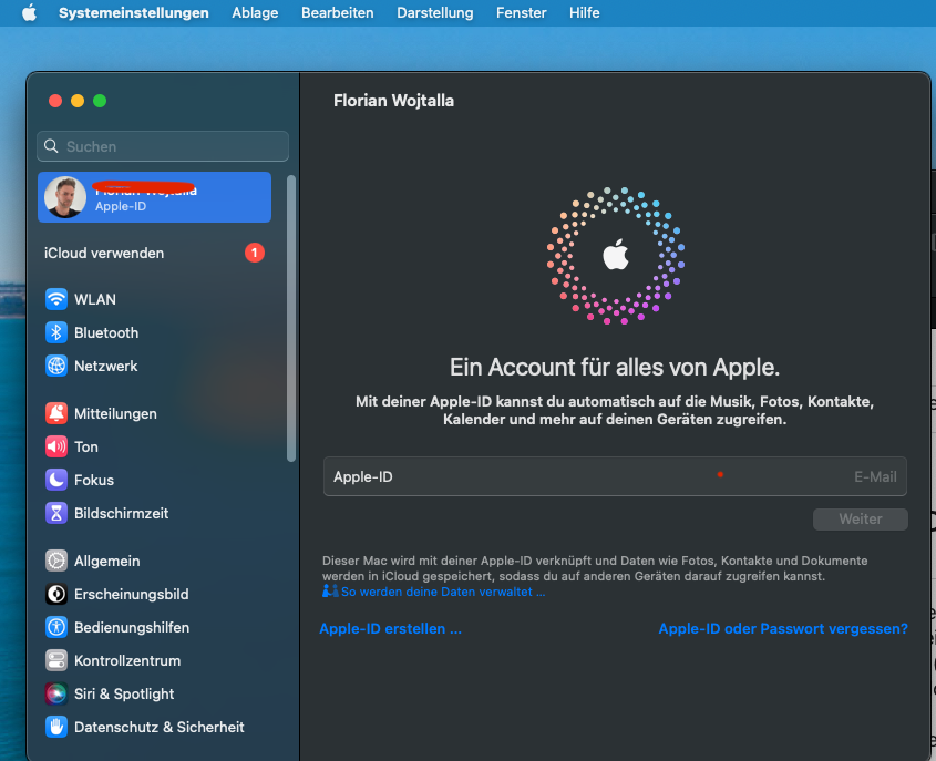 Ich habe vor ca. einer Stunde meine Apple ID aktualisiert und versuche seitdem mein MacBook Air (M2, macOS 13.4.1 (c) (22F770820d) wieder in iCloud anzumelden, leider erfolglos während sich mein iPhone 12 Pro Max problemlos wieder angemeldet hat.
