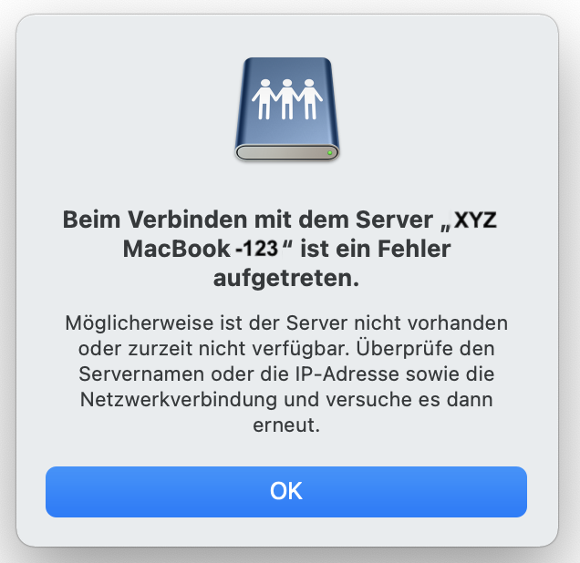 habe seit über einem Jahr einen nervenden Fehler: mein MacBookPro möchte sich ständig mit einem Server verbinden, den es aber nur bei mir zu Hause gibt. Dort klappt die Verbindung einwandfrei, aber außerhalb