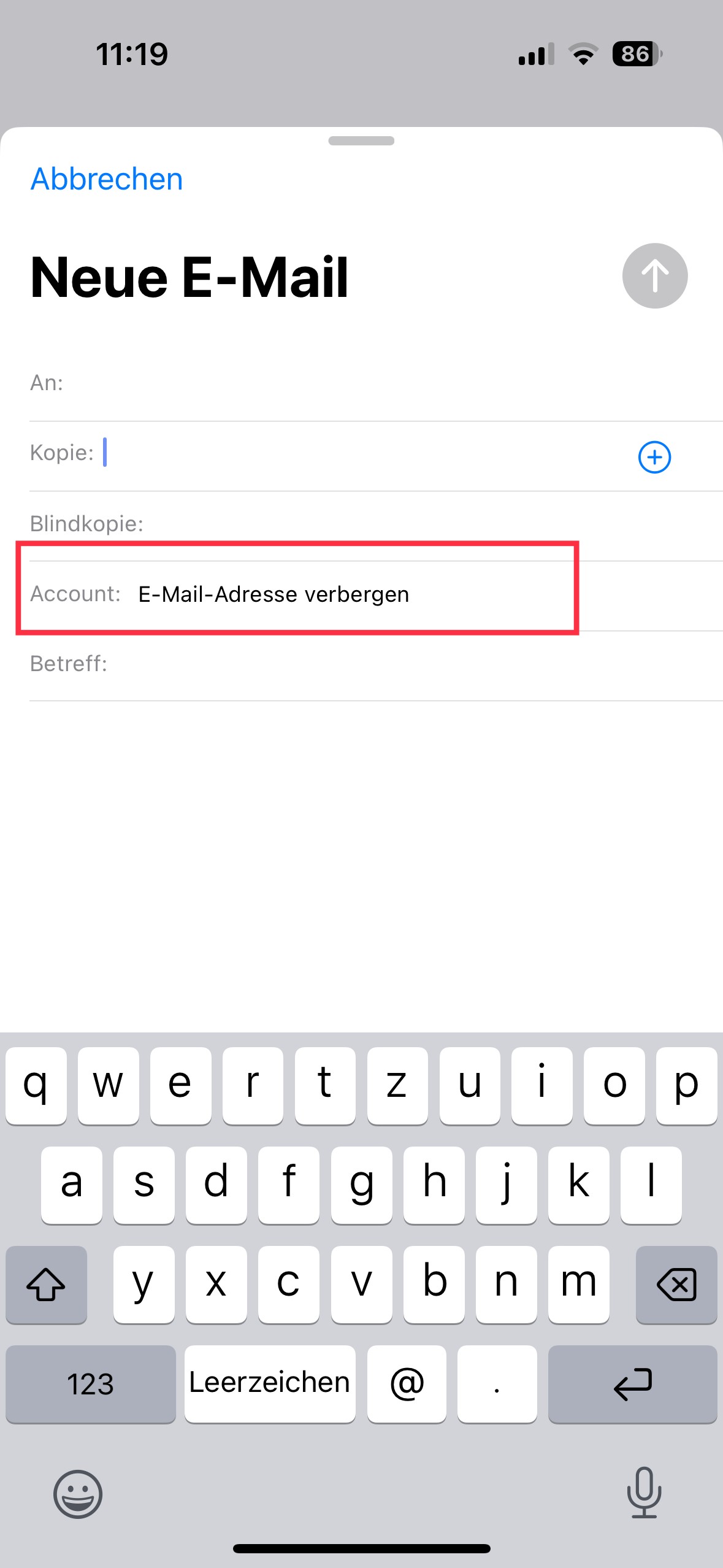 Wie kann ich mit der Relay Adresse eine Mail schicken in der App Mail?