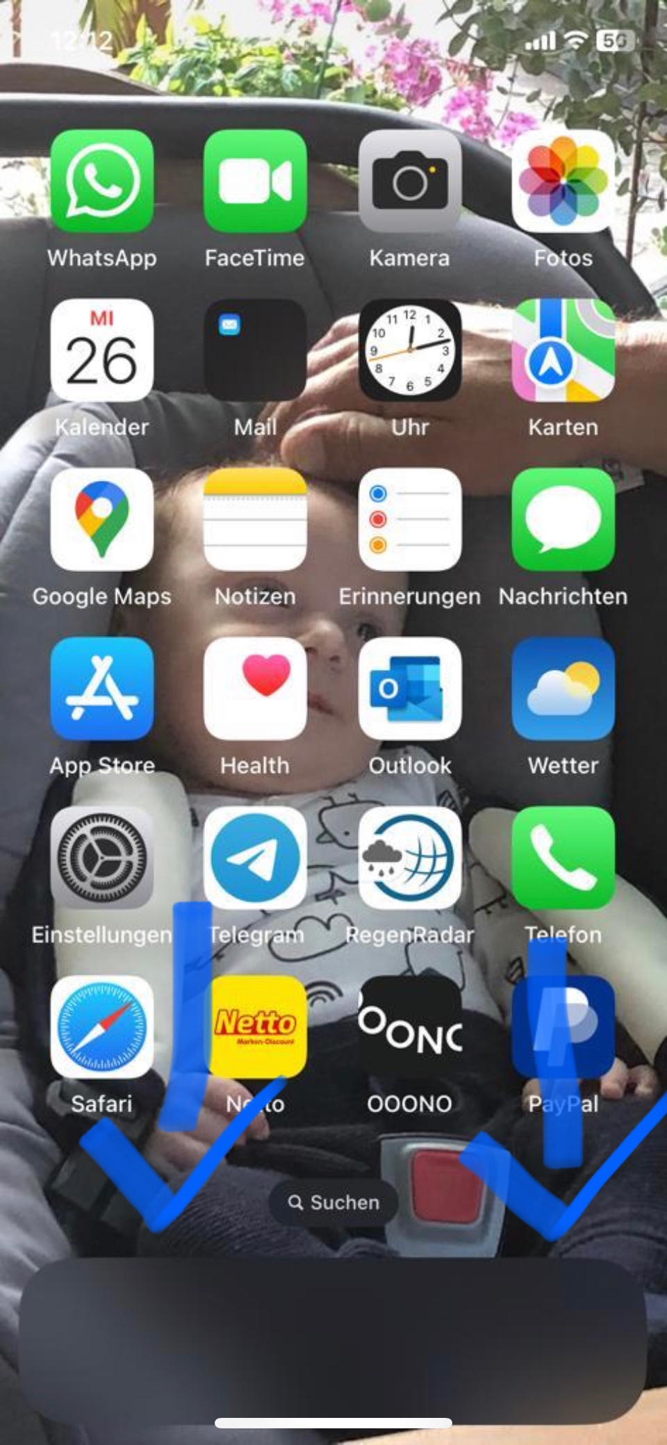 Das hat nichts mit der Suche zu tun. Das ist das Feld für den Schnellzugriff auf vier "Lieblings-Apps" im Homescreen. Hier sind nur einfach keine Apps drin, deswegen ist es grau.