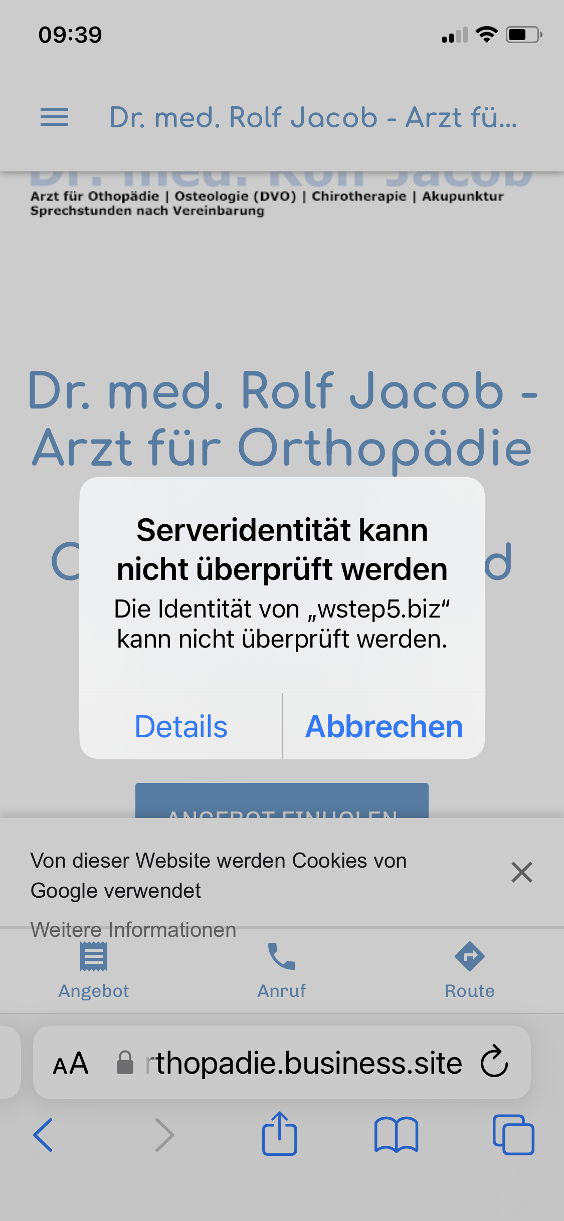 Von welcher App kommt die Meldung genau und die Identität von welchem Server kann nicht überprüft werden?