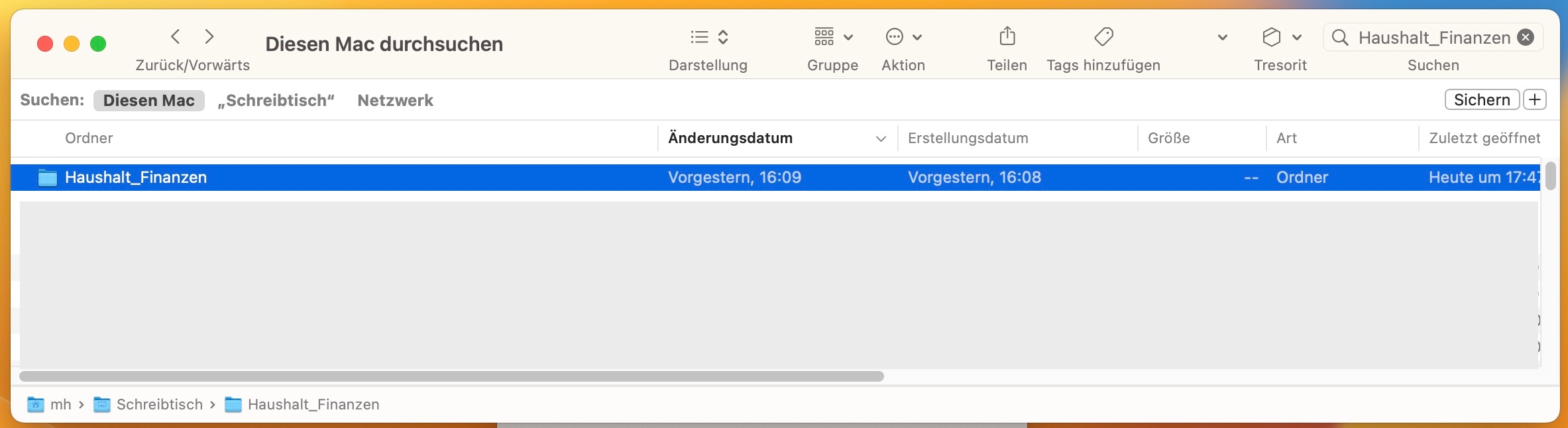 Wenn ich einen Ordner, der dort sein muss, suche wird er angezeigt (siehe 2.Suchen).
