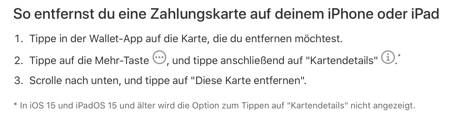 - Anruf bei apple support. Antwort: Letztes Software-update durchführen, wenn die suica card immer noch auf dem Handy ist die wallet löschen und neu auf das Handy laden. (Anm.: Update hat keine Änderung gebracht. Die wallet kann erst vom Handy entfernt werden wenn die einzelnen Karten entfernt wurden…)