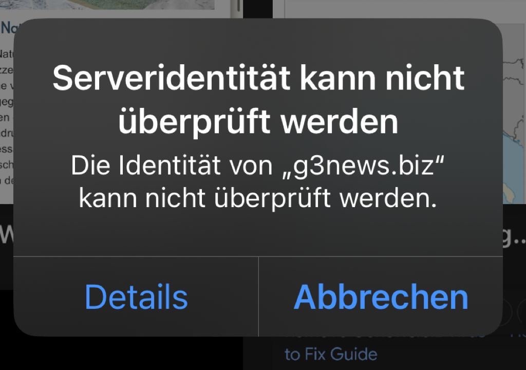 Die Identität von g3news.biz kann nicht überprüft werden