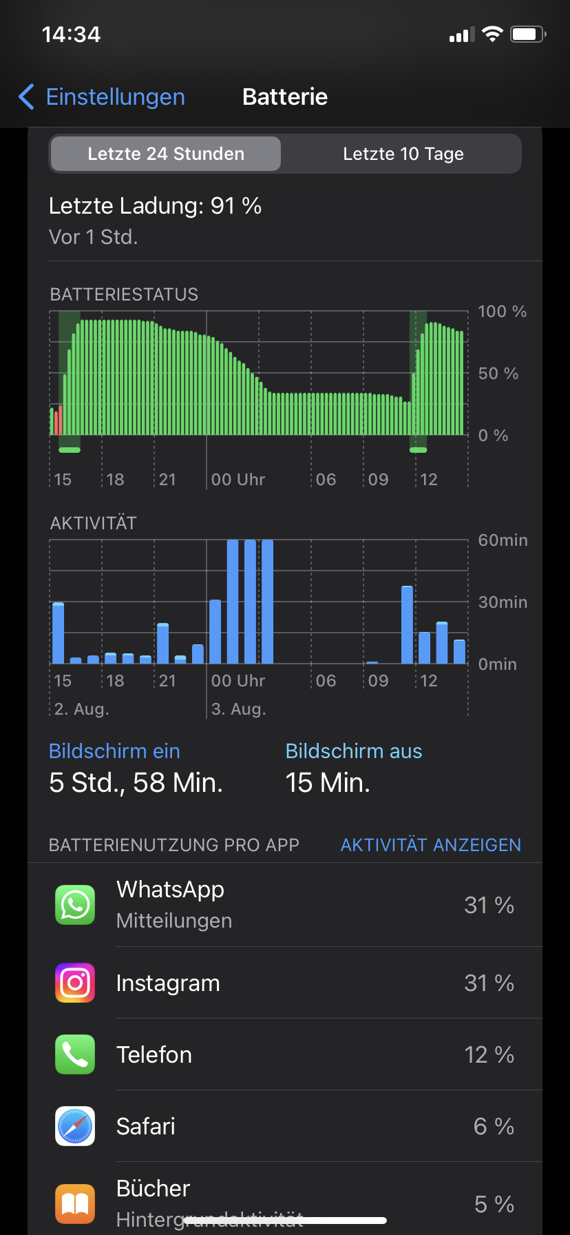 Ich habe seit 1 1/2 Jahr mein iPhone 11 und es geht leider schon sehr schnell leer. 5 Stunden reichen aus bis es leer geht. (Ich lade mein Handy immer nur bis 80%). Meine Akku Kapazität beträgt 85%. Nun, ich verstehe nicht warum mein Handy schneller leer geht als bei Leuten mit einem iPhone 11 und mit 79% Kapazität. Also wirklich, ich habe kein Plan, ich hatte mal mein Handy zurückgesetzt das hatte nicht geholfen.. Ich habe auch wenig Bilder und Apps. Ich weiß nicht mehr weiter, ich frage euch. Was kann ich machen damit mein Handy nicht so schnell leer geht.